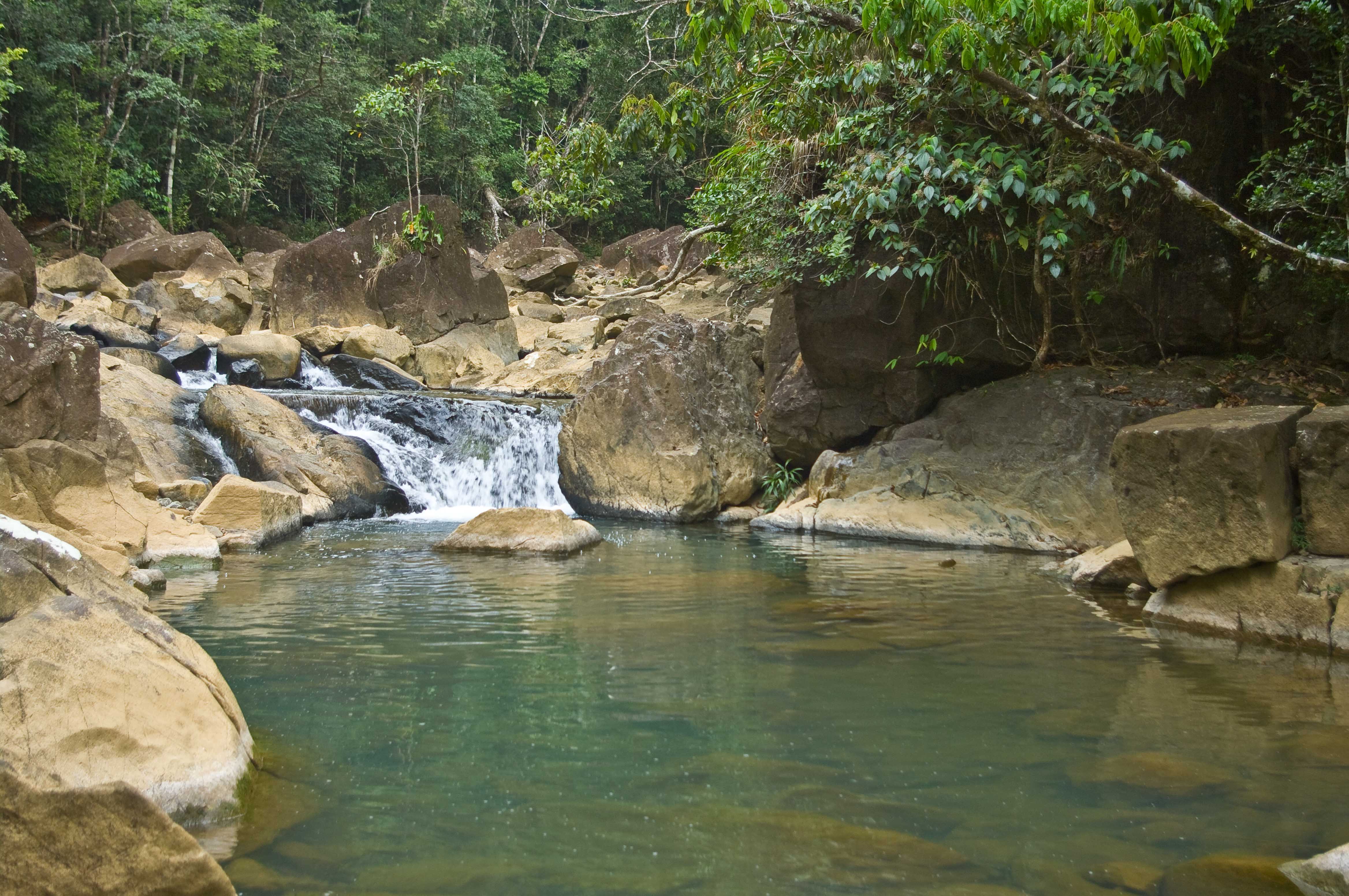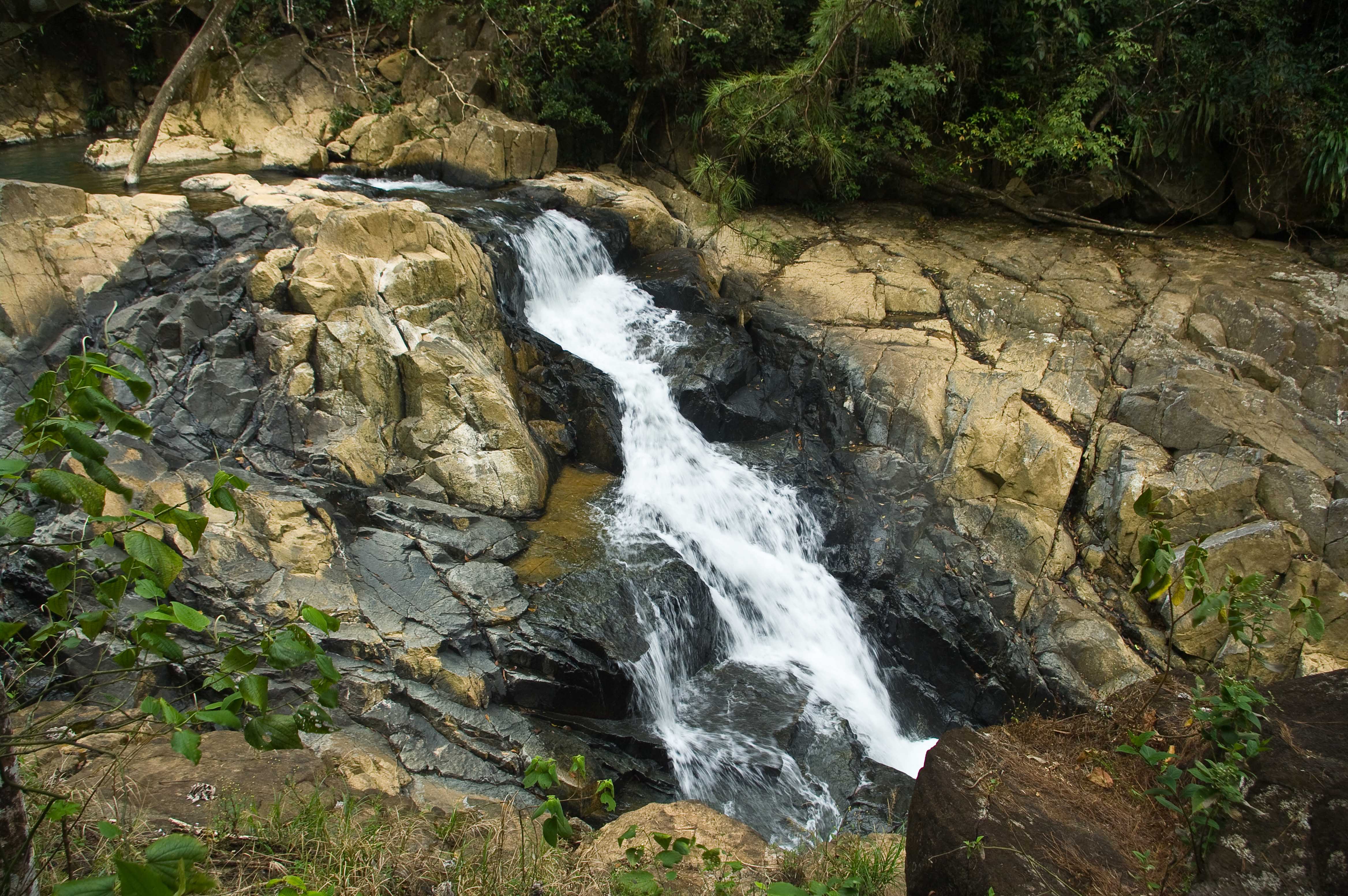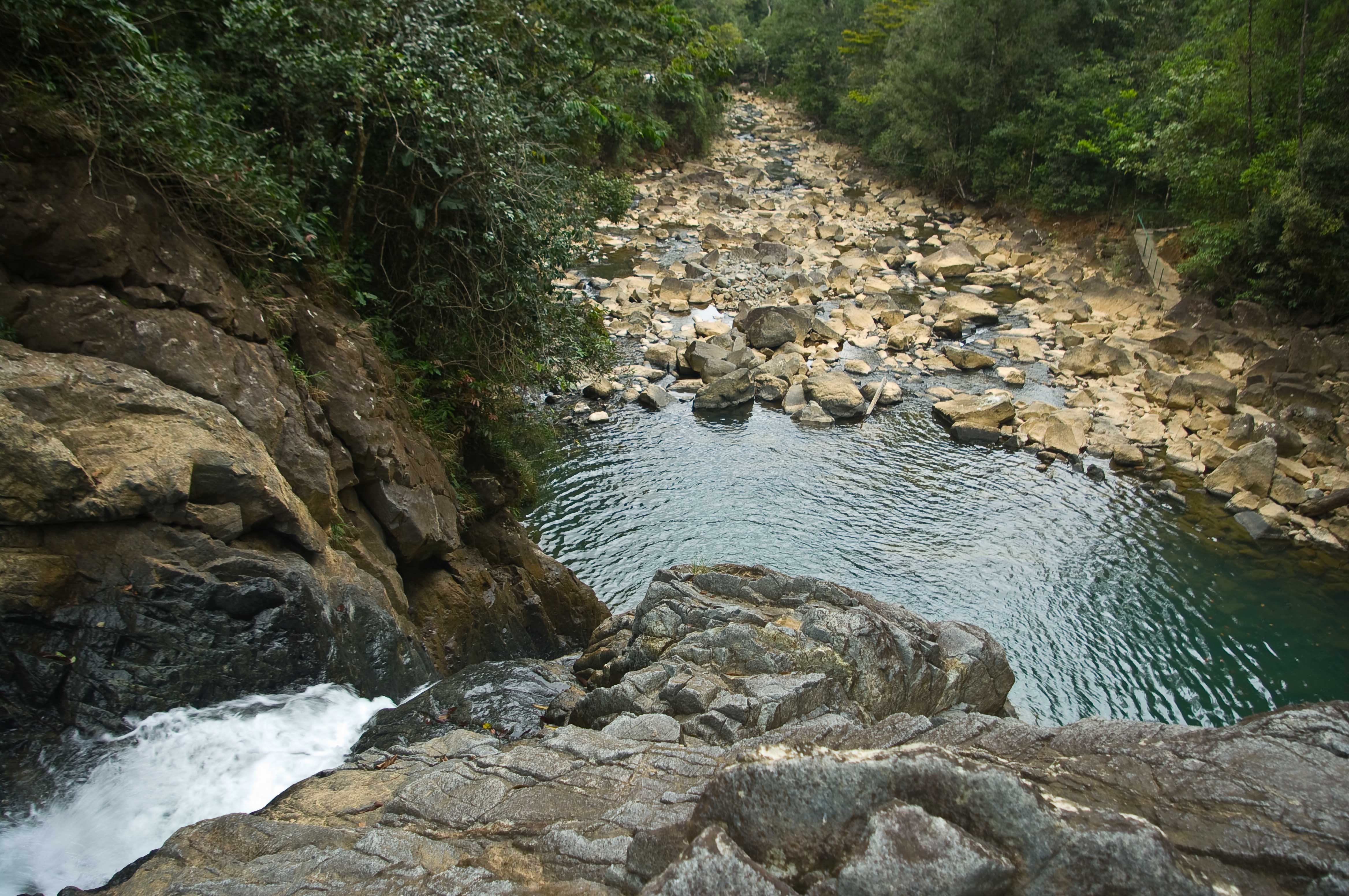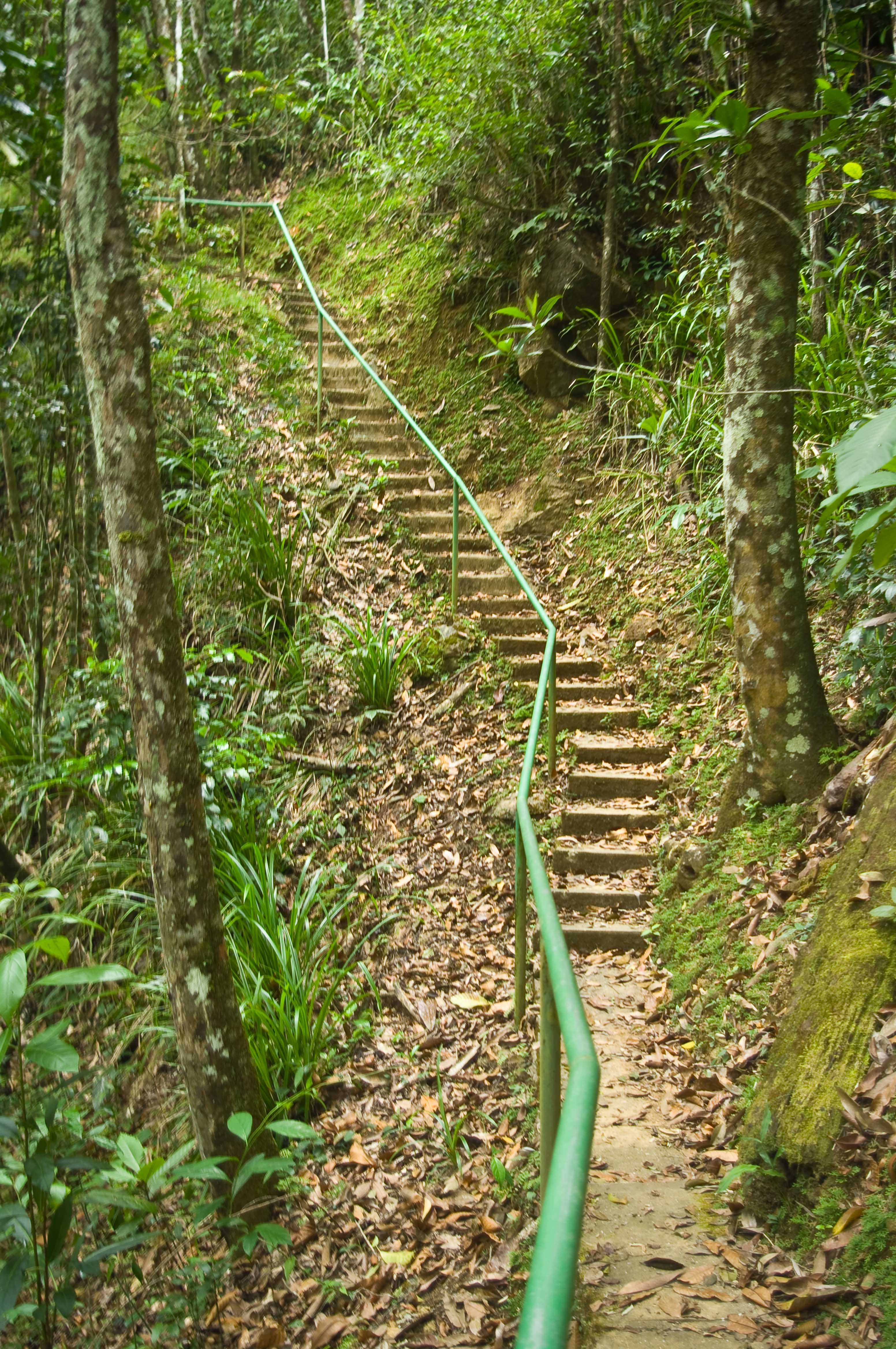 you up. We set off on one of the trails that takes you down to the Rio Las Cascades river. This is not a large river but I bet it is lots bigger than this during the rainy season (May – November). There is little danger of getting lost as all the trails are concrete walkways, about 18 inches wide and with a steel rail wherever you might need support. You could almost call this place wheelchair accessible, except for the stairs. The little concrete walkway tends to keep people on the trail and not wandering through the adjacent areas. It minimizes the environmental damage while not presenting too much of an intrusion on nature. I was surprised to find this level of infrastructure in place but I guess because it is within the housing development, they needed to do something. I’d be willing to bet that if you came into this park from the river side you wouldn’t find any infrastructure at all.