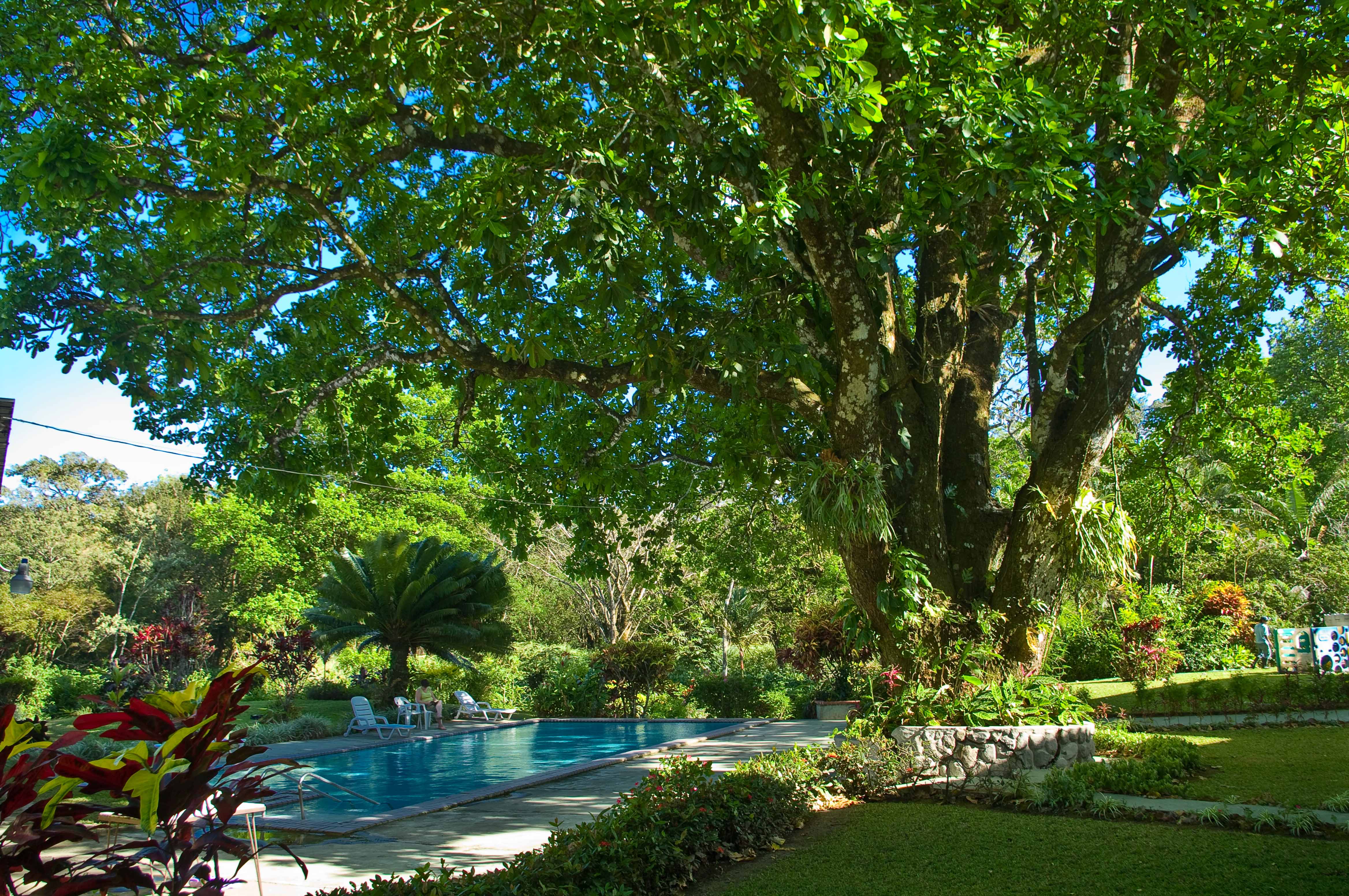 Octav left us after breakfast to walk around town and we returned to our resort. After talking with the owners, we decided to take a short hike down to the river to see some falls that are close to the hotel. By the time we were ready to leave, Octav had returned to the resort so he joined us for our walk. We never actually found the falls as it required a bit of rock hopping on wet rocks and the footing was not very good. We elected to sit in the shade by the river and enjoy the sound of the water making its way down the channel and the cool breezes that have been with us all day. On return to the resort, we decided to try the pool as the afternoon was warm. Cabanas Potosi have an arrangement with another hotel in town that has a pool so we got directions and made our way to an empty resort with a beautiful big pool. We were told it is spring fed and there is no chlorine in the pool. The pool is shaded by one of the largest trees I have ever seen. I can’t even imagine what it must be like to keep that pool clean when the leaves all decide to drop! The water was refreshing, not too cool and not too warm and the pool was nice and clean.