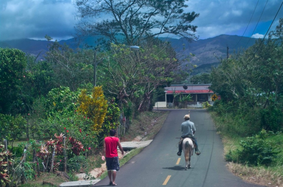 The Santa Fé town site is hilly, somewhat reminiscent of the hills in New Westminster. You have to be careful the nose of the car does not scrape the pavement when you reach the bottom of one hill and the start of the next. It is a poorer area although the houses are, for the most part, kept painted and clean. It is not uncommon to see people on horseback here.
