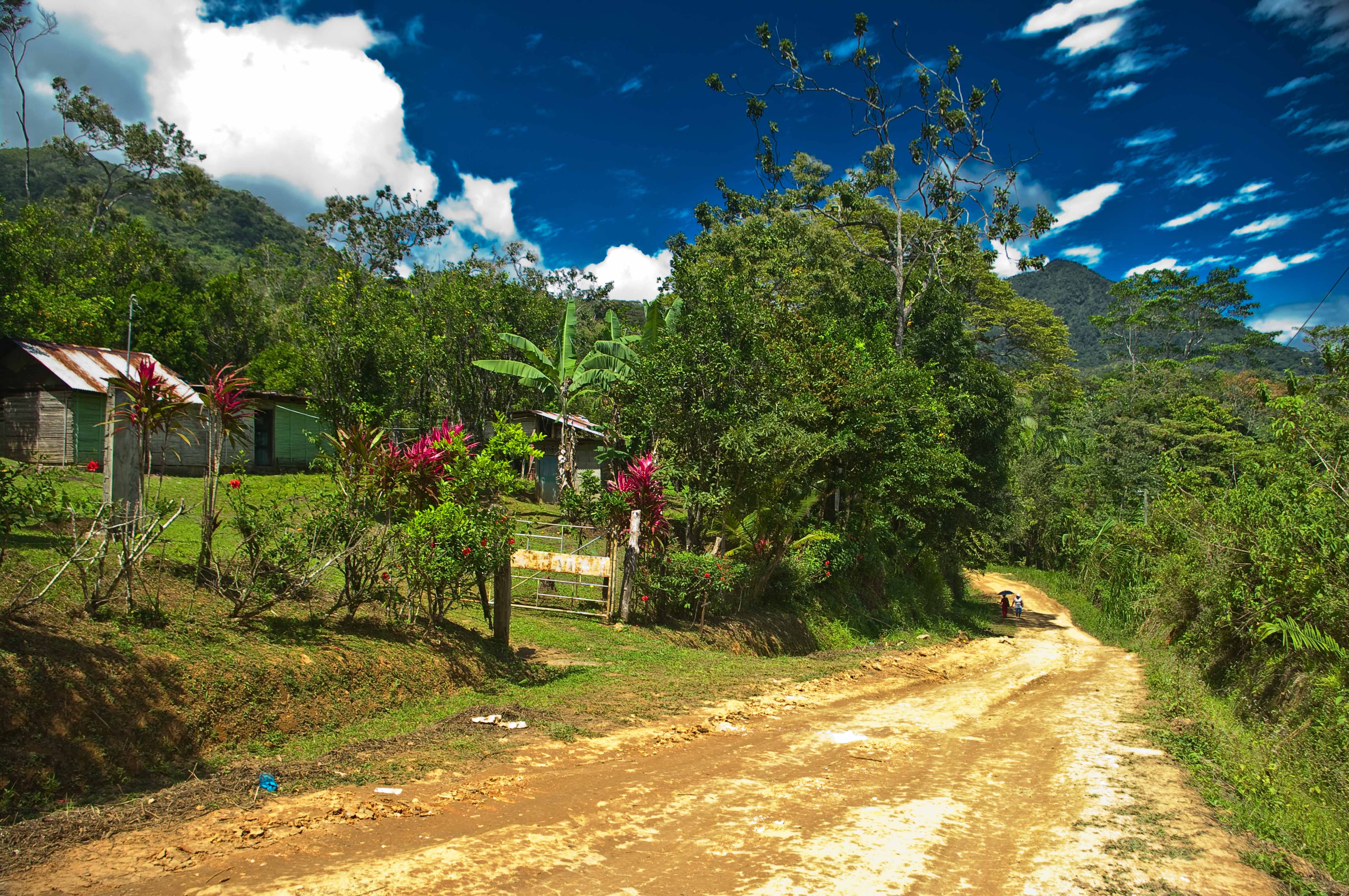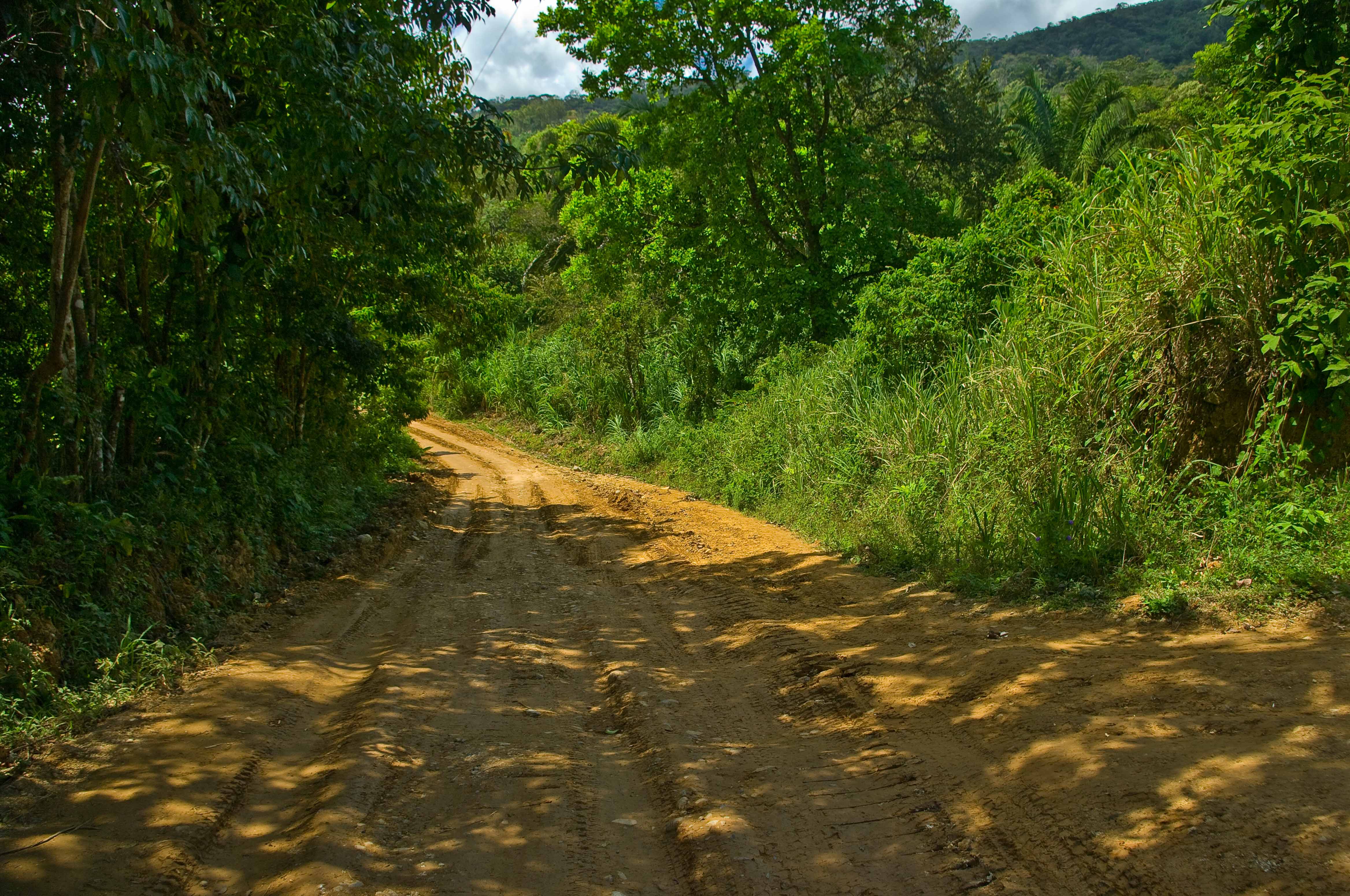 We elected to walk from the junction of the paved and mud roads. The clay had dried pretty well but the ruts were still a problem. Here are a couple of shots of that short road. The last one is of the rutted hill that kept us from driving the last 25 M to the resort.