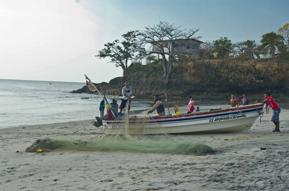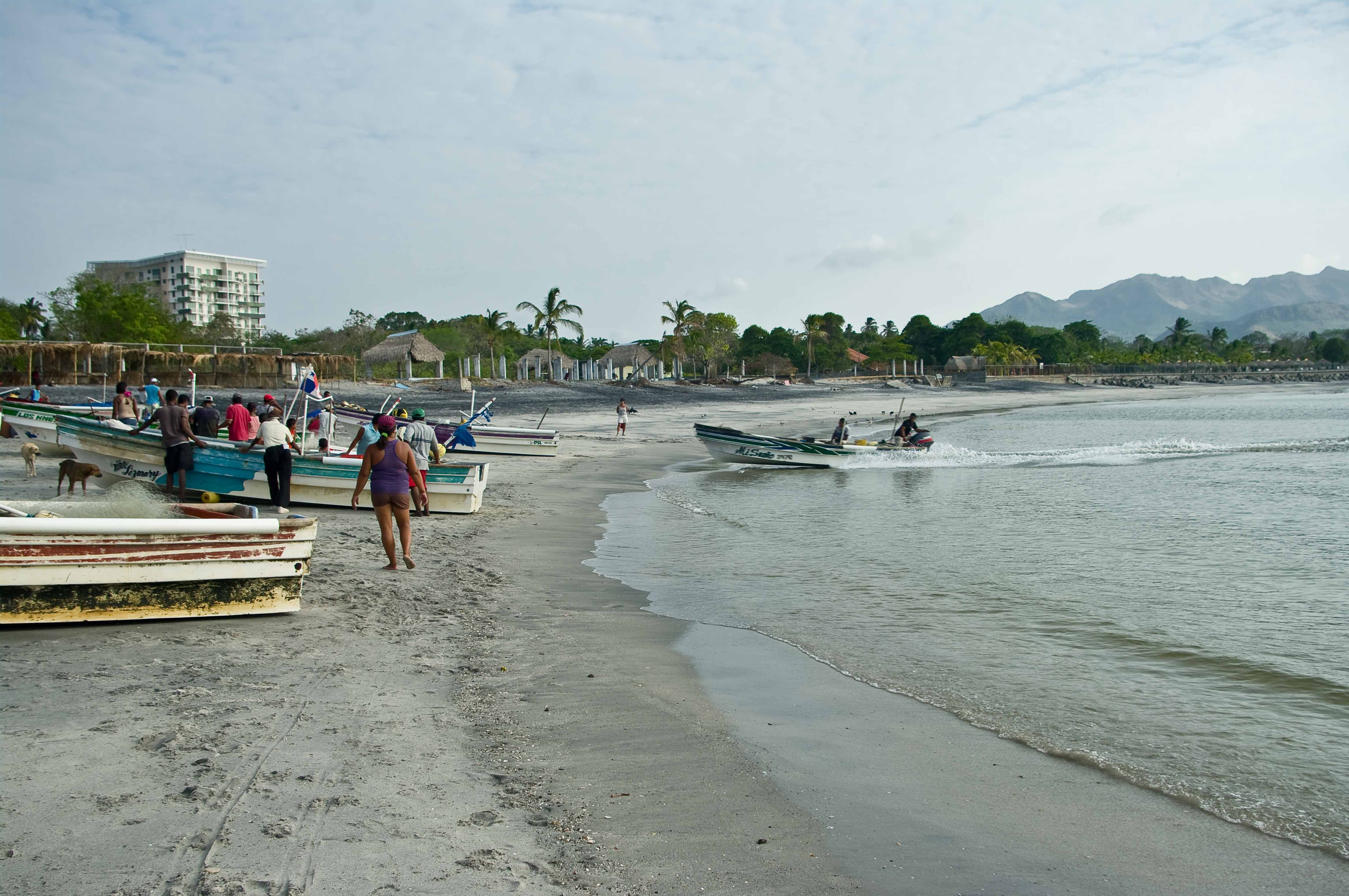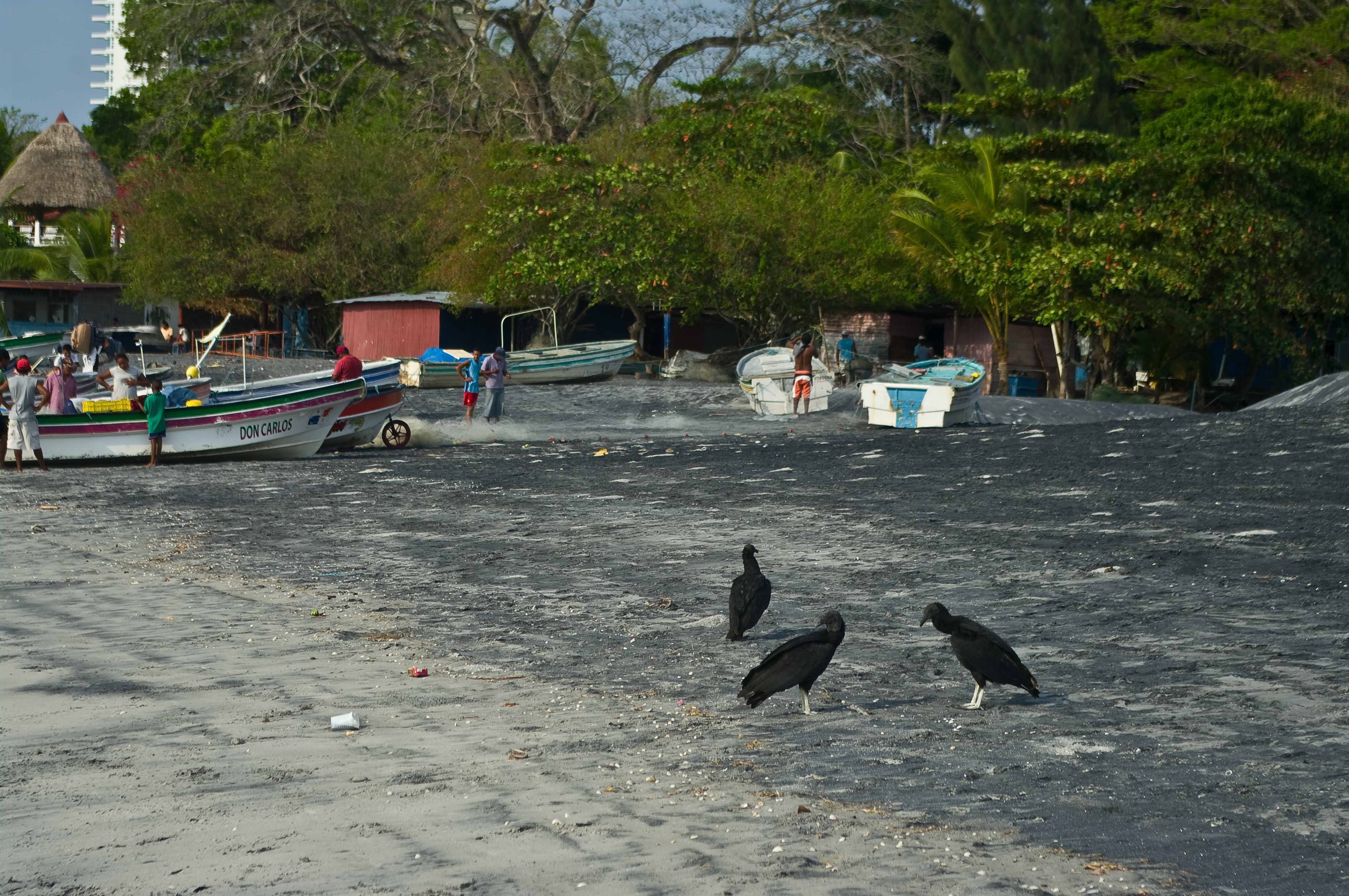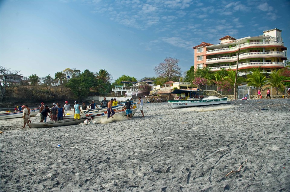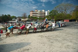 I decided to have a look at what went on in Gorgona as the fishing fleet arrived back with the day’s catch. A short 15 minute walk down the beach took me into the middle of the busy activities. The whole fishing community turns out, from small children to aging adults, on the beach to greet the returning fishermen. If you look carefully you will see that the chaotic activities on the beach are actually quite well controlled. A man on the beach directs each boat, one at time, to run up on the beach in a designated place. The boat takes a run at the beach from about around 100 yards out, building sufficient speed to shoot the boat up on the sandy beach some 10 or 20 feet. The boatman tilts the outboard motor out of the water at the last-minute as the boat hits the beach.