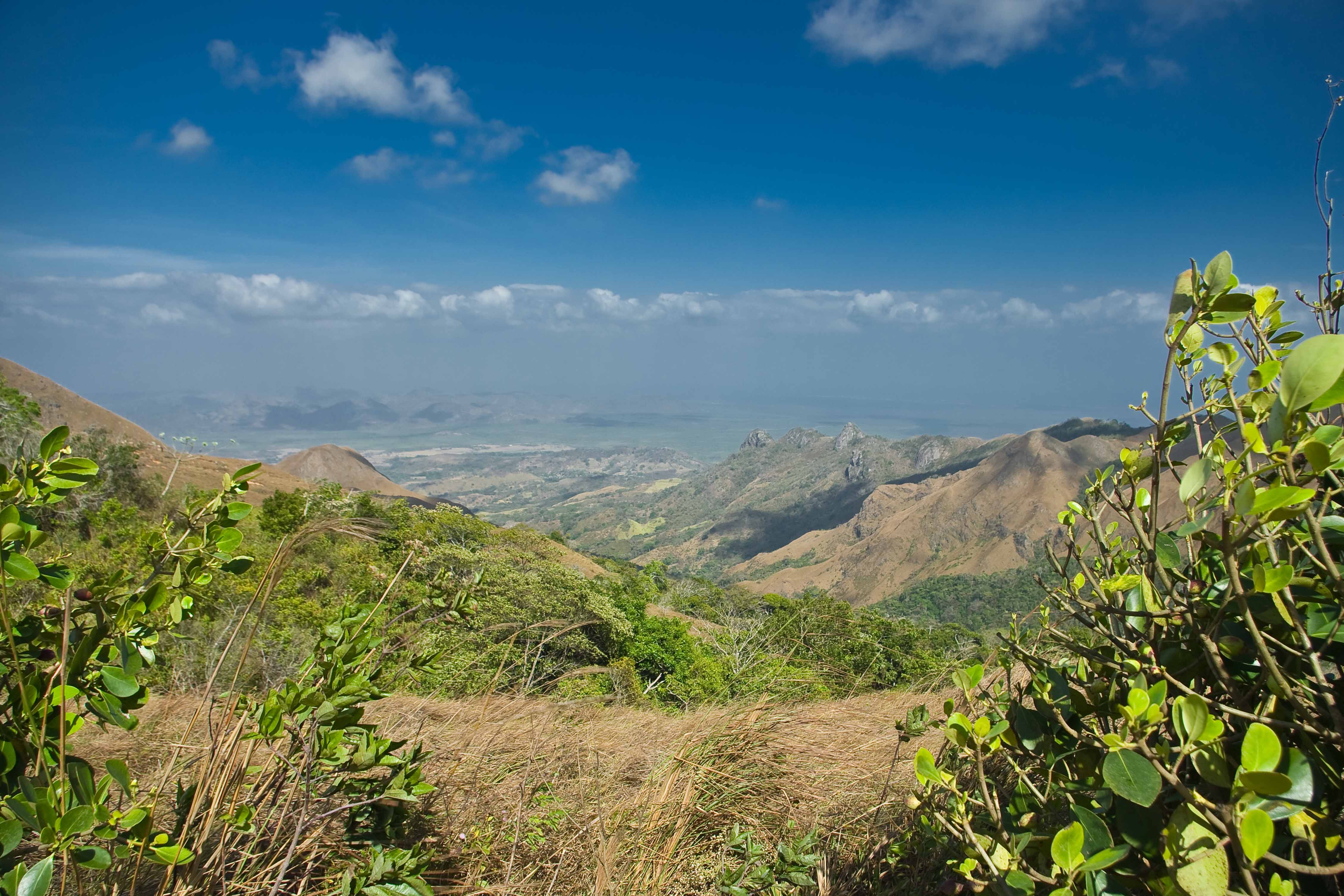 Once in the park, we drove up the steep well paved road in search of views. There are supposed to be good views of the canal basin and the mangroves at the tip of the mouth of the Chame River at Chame Point from the lookouts in the park but today is quite misty and there is a lot of burning going on in the area to get rid of dead vegetation. As we continue our climb there are some spectacular views of the coast available. Unfortunately my filters were not able to remove all the haze from the pictures but I think you can get the idea.