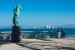 Our stop at Puerto Vallarta Mexico was precisely on schedule. It has been a few years since I have visited here and there are lots of new thing, like the new cruise ship facility, which is spotless, carefully manicured and beautifully landscaped. It looks like it can handle three ships at a time, but we were the only one at this time. Also, the six lane divided roadway into town replaces a narrow two lane thing that I recall. Downtown, the Malecon (beach side walkway) was widened and lengthened and the foot sized cracks were filled.