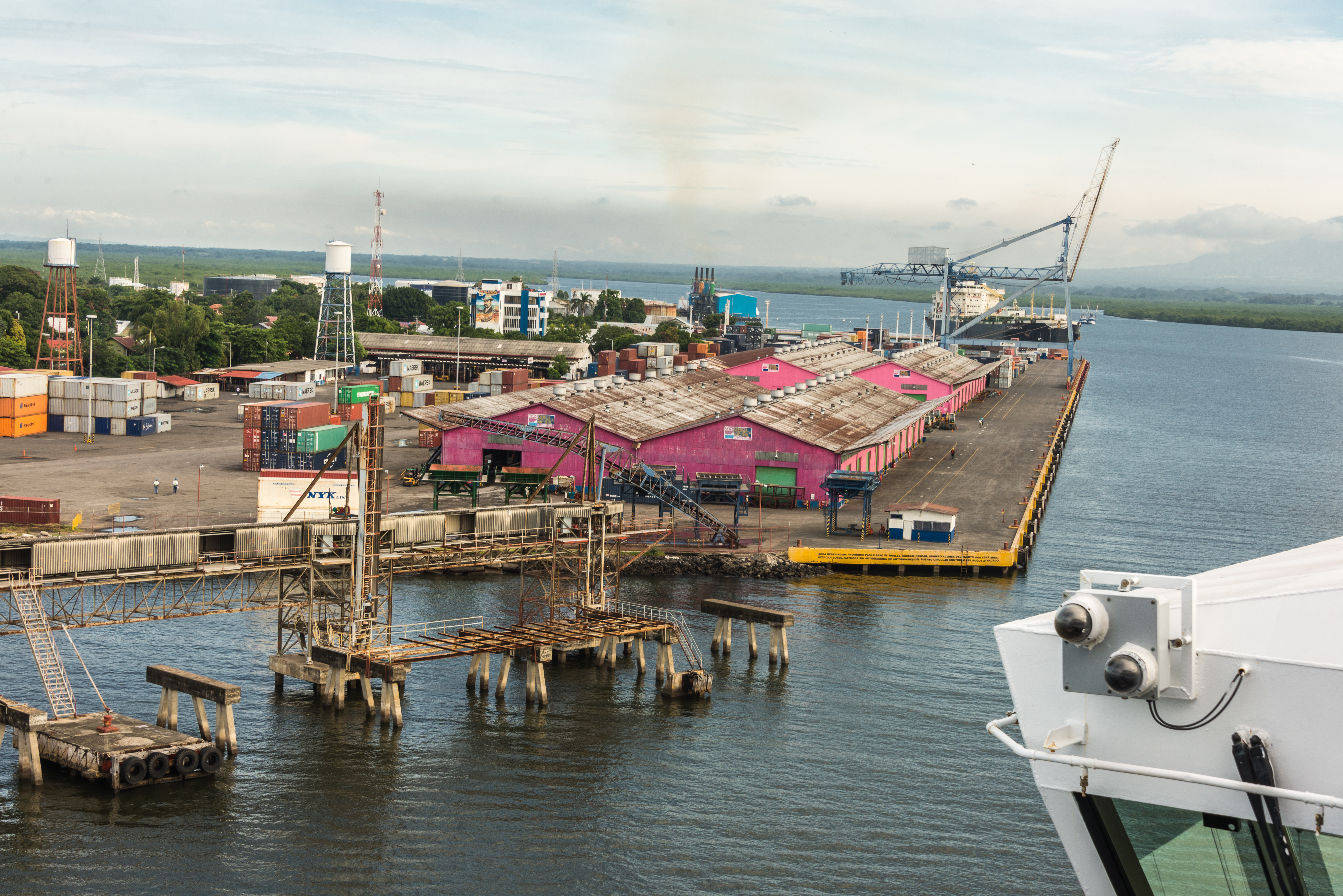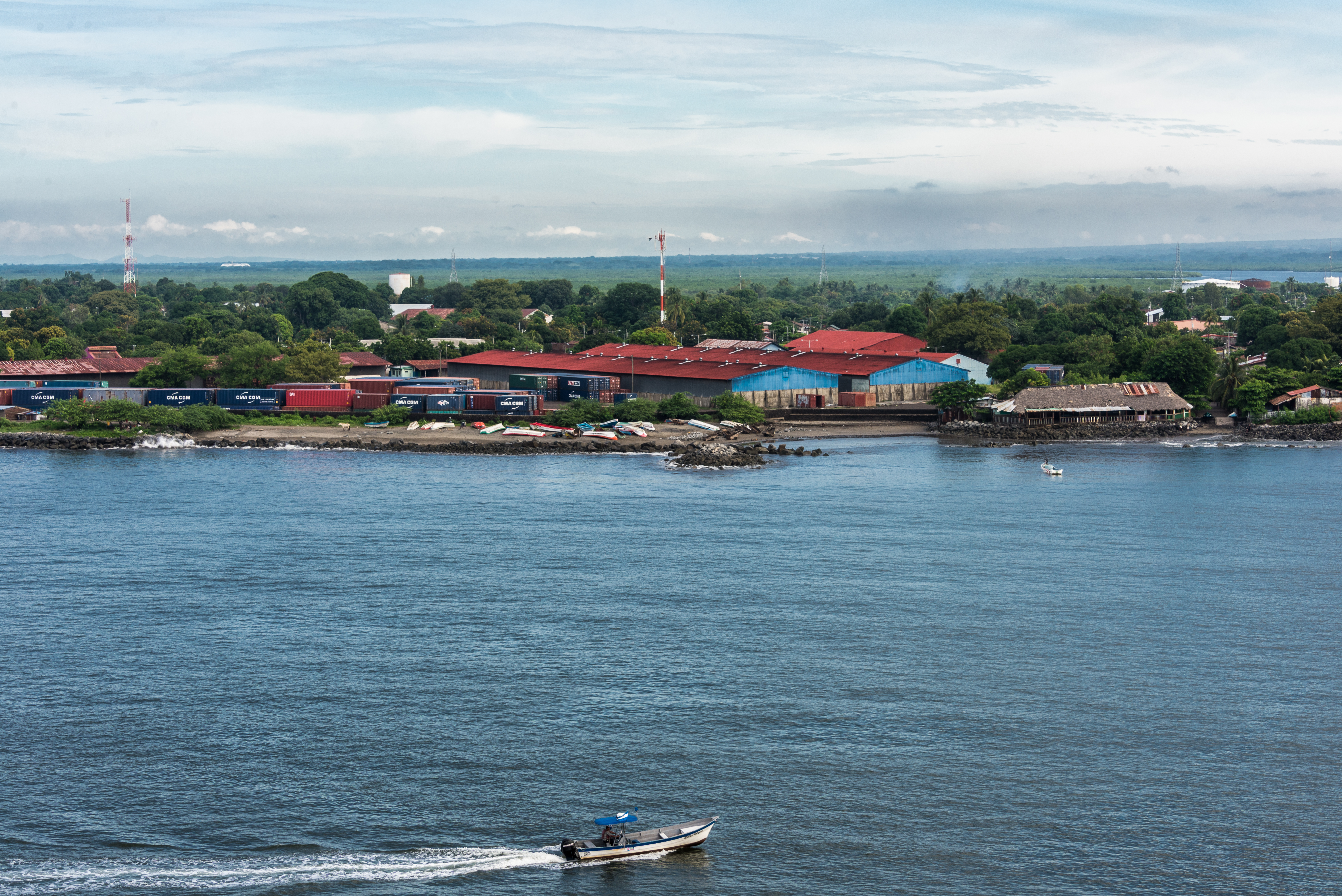 Today, we arrived at Puerto Corinto, Nicaragua at 8 AM. The day was warm, humid, and overcast at 28 C. Puerto Corinto is a small mixed freight and passenger port. Brightly painted long corrugated metal storage buildings, with rusty and corroded roofs covered much of the dock and a foul smell emanating from somewhere close, was a constant reminder that something to do with cattle was not quite right.