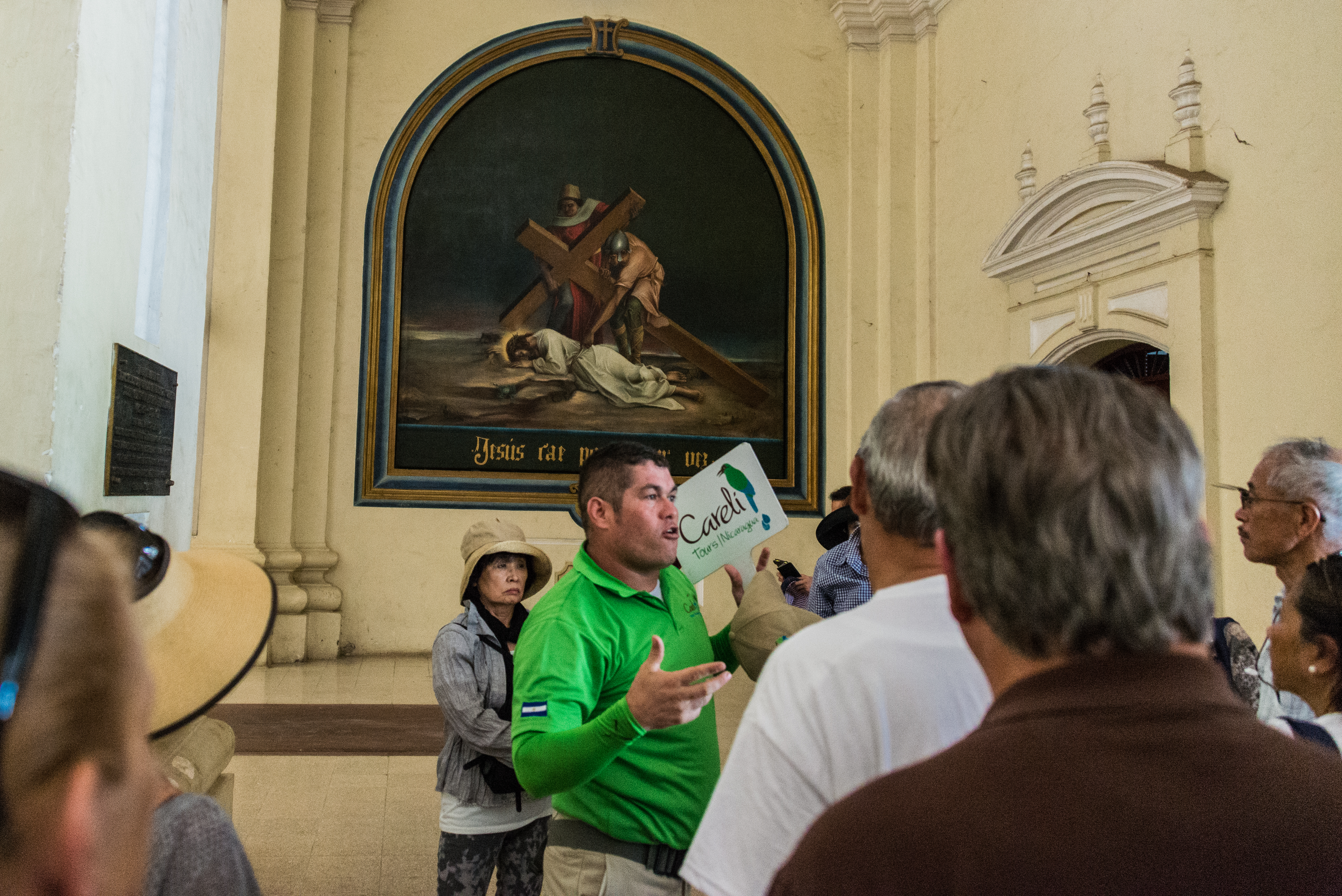 Our busses are large modern MarcoPolo highway coaches in nice condition. The air conditioning worked well and the windows were clean so you could take pictures. Our tour had three busses so it would have been around 140 or so people. It was extremely well organized and the guide spoke good clear English. When we arrived at our destination, each guide took their people around the site in a different order so the crowds were not obvious and there was no waiting. We headed to another Spanish colonial city, this time it was Leon.