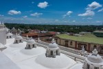 Over the years, the church has been remodeled/rebuilt six times due to revolution and volcano activity. It is currently undergoing another renovation. They started on the roof, which we were allowed to use to get a better view of the city. The stairway up to the roof is very narrow, steep and dark. I imagined one of the super-sized passengers being stuck in the stairway and us not being able to get up or down and missing the ship, but everyone eventually emerged at the top. Before we were allowed out on the roof, we had to remove our shoes. That was due to the brand new fresh white paint job on the roof. It was so intensely white, as we emerged from the shadows of the dark stairway, that a kind of snow blindness hit you until your eyes adjusted to the lack of definition in the monochromatic paint. It was eerie as stairs, and everything else went completely white. Eventually, normalcy returned and we found ourselves on a very interesting roof covered with domes bulging up from the church below.