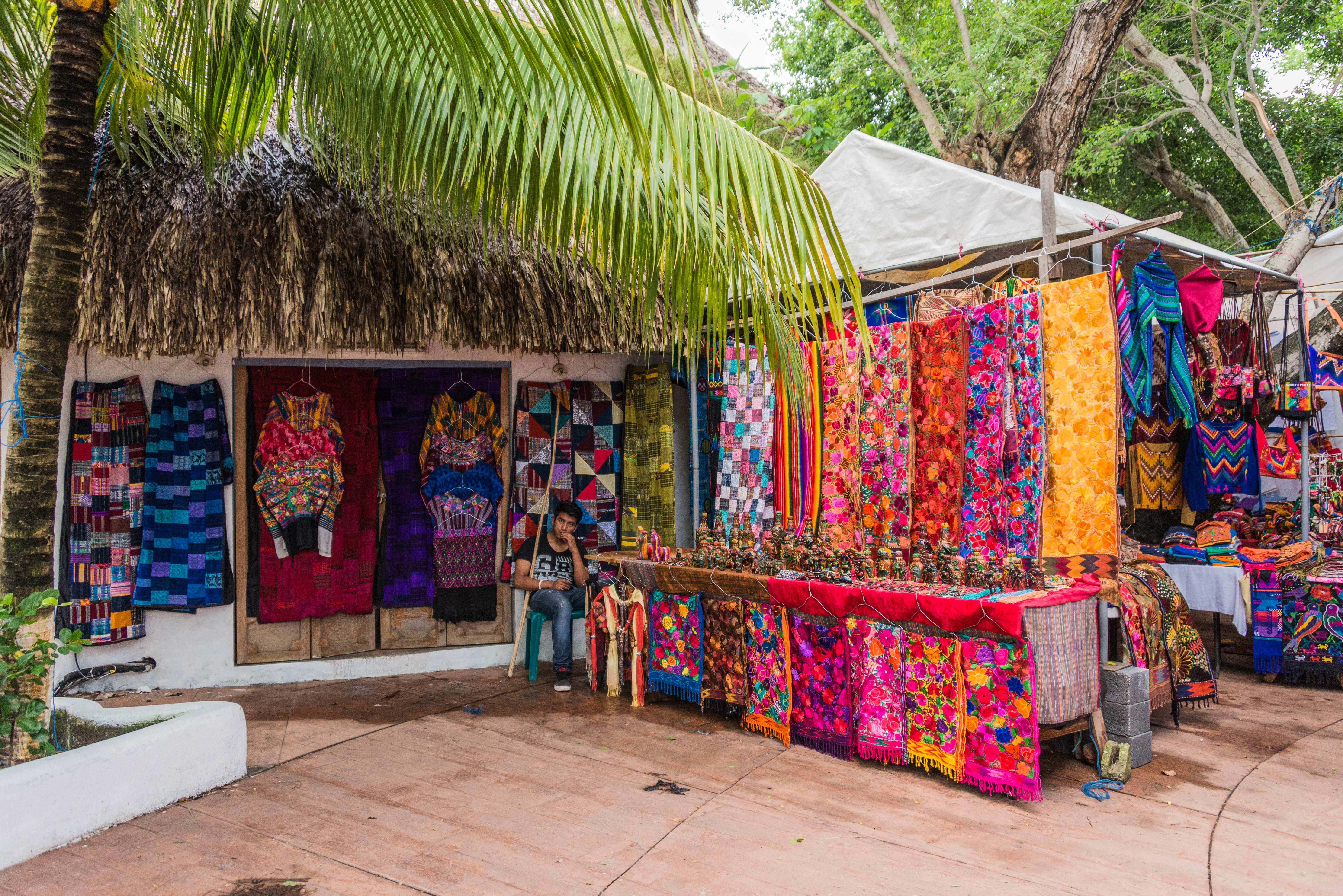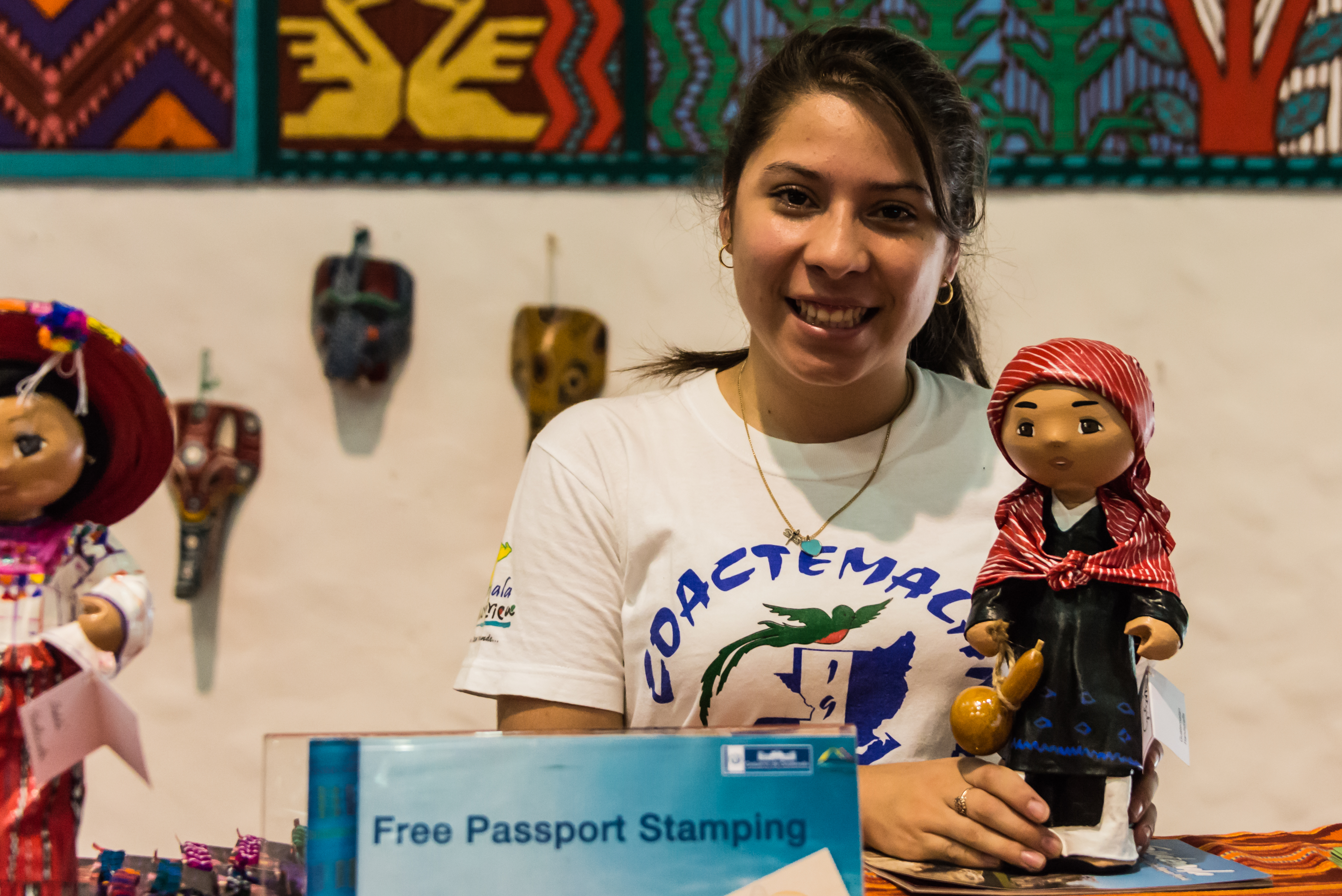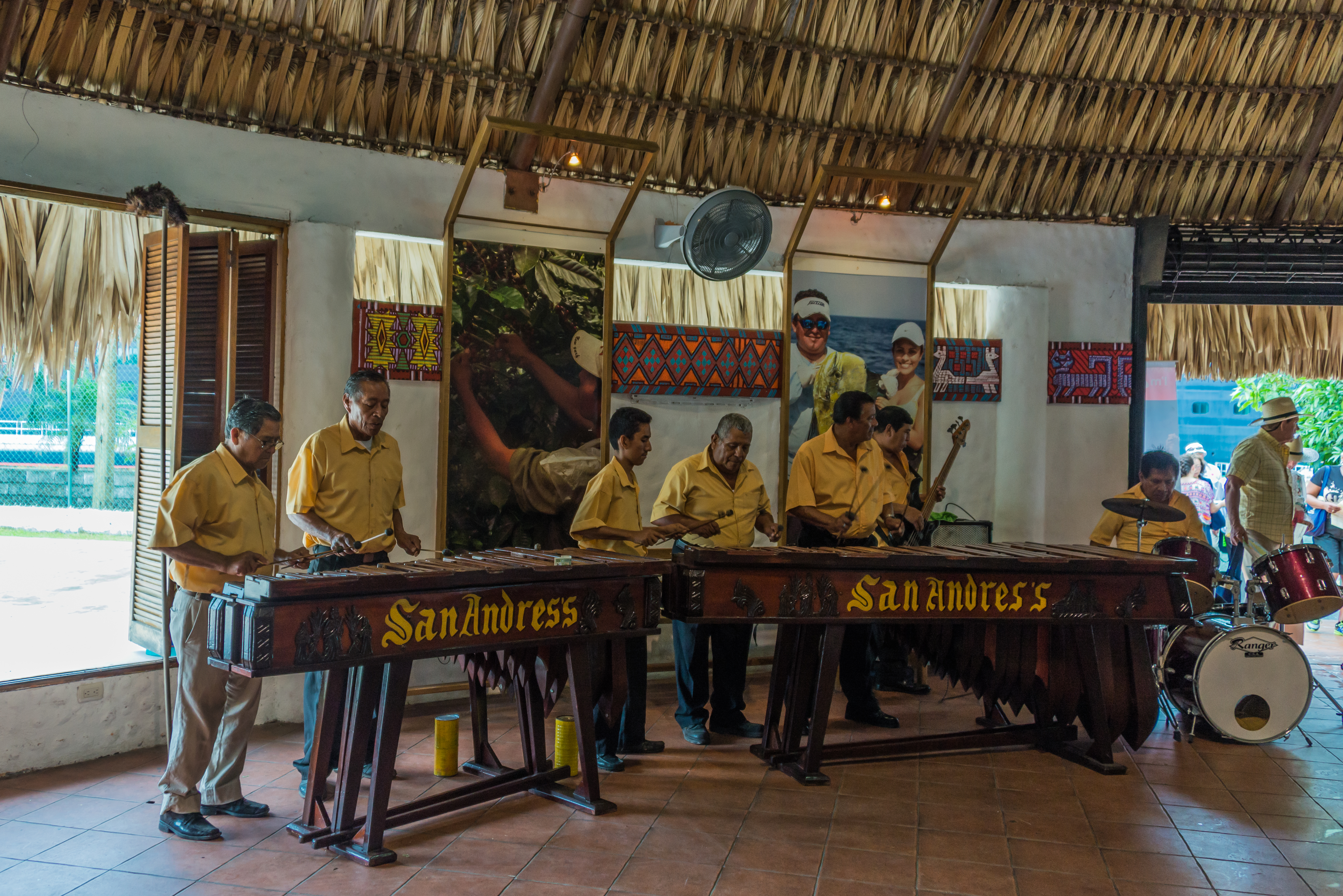 From the ship, our dock appeared very small, with a narrow railed walkway to a large palapa structure. Staff from the area all seemed to come out to view the arrival of the Westerdam. As we came ashore and walked the narrow walkway toward our tour bus, there was an elaborate welcome under way in the palapa, with a band playing Guatemalan music. There is a large new market area full of colorful local curios, which everyone must pass through to clear the port.