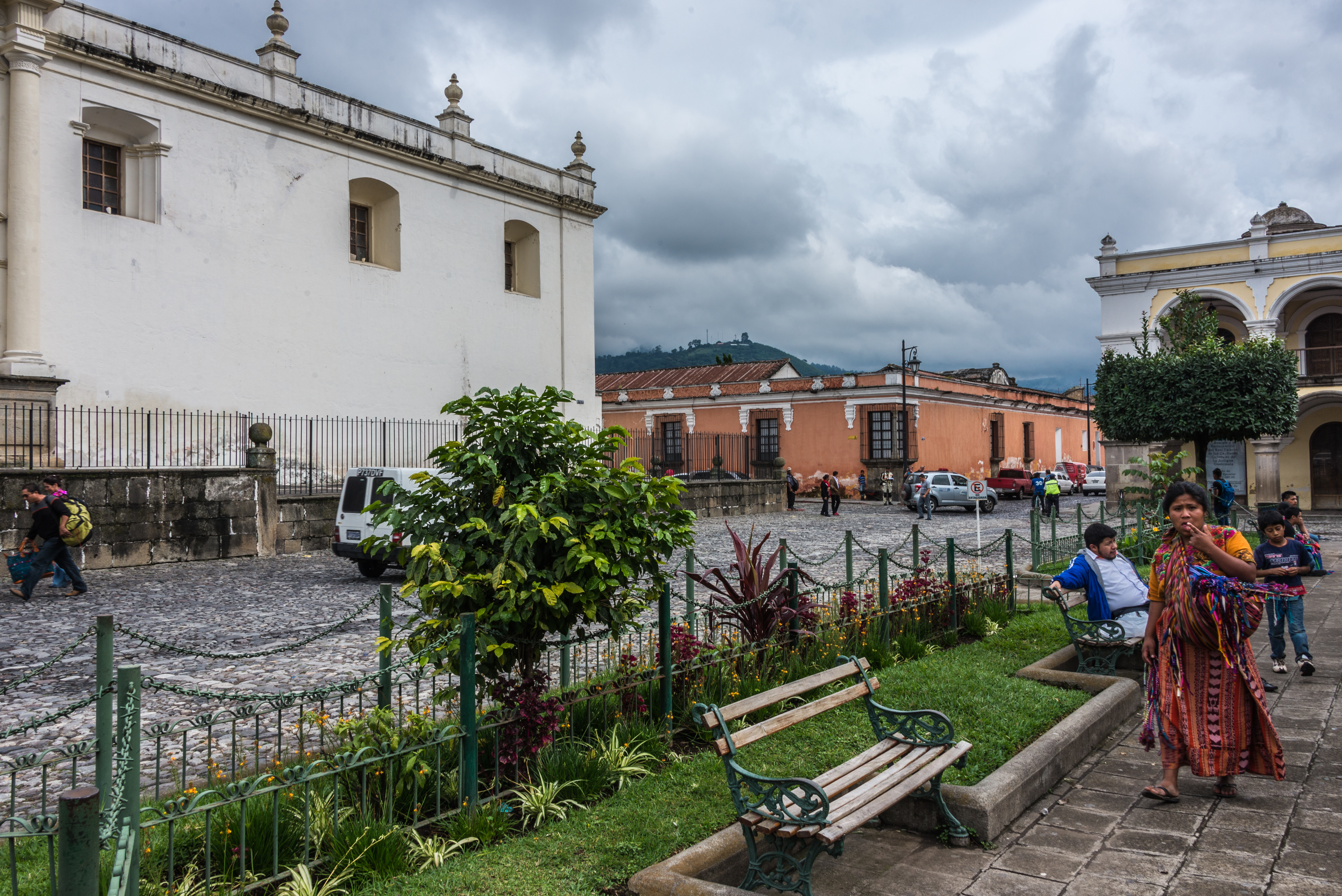 We drove 90 minutes in a Toyota Coaster bus in a very cramped seat, to get there. As we arrived, the weather improved and the sun appeared. The 1,500 m elevation made for a cool comfortable atmosphere. Today, the population of Antigua is around 20,000.