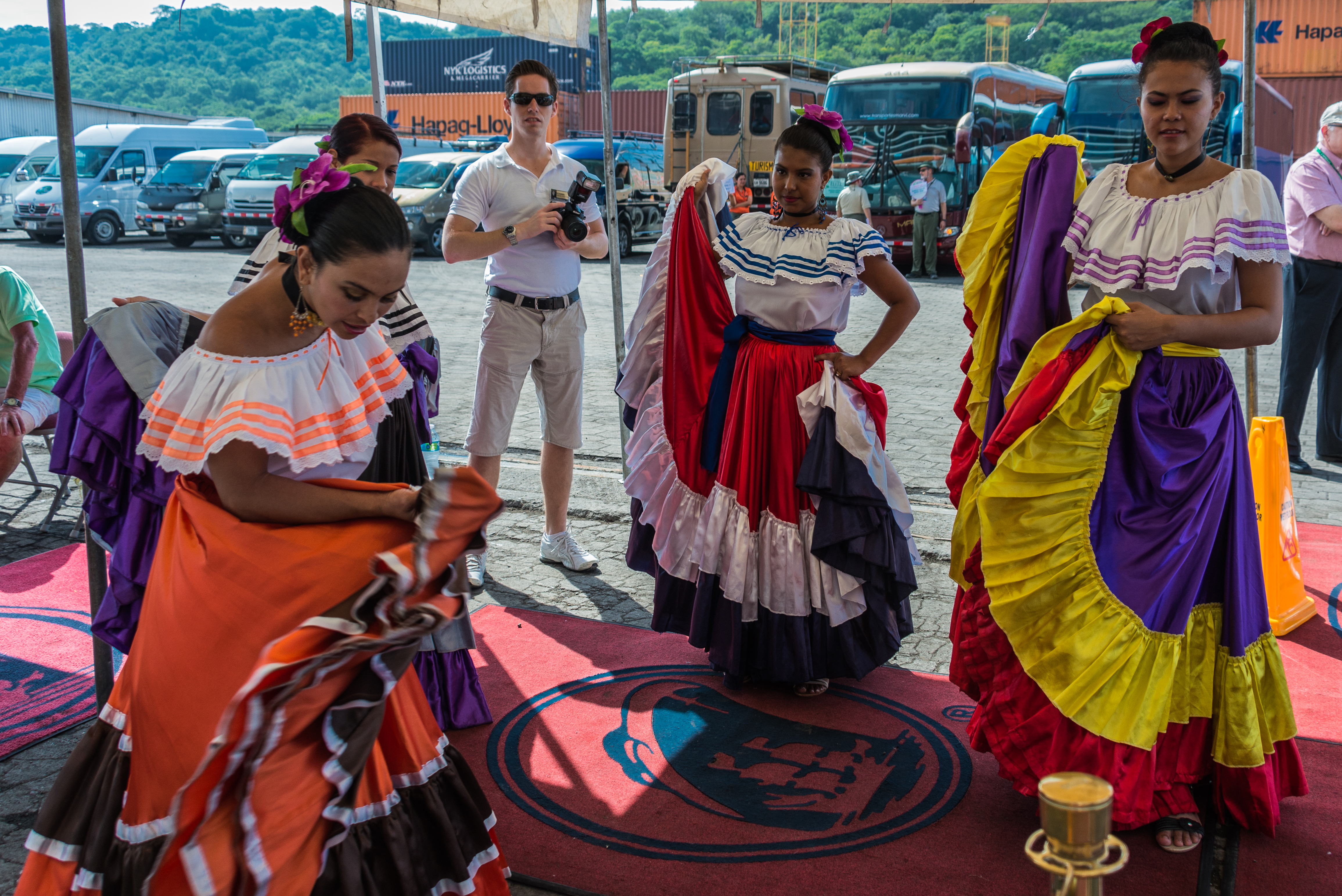 We arrived in Putero Caldera, Costa Rica just before 8 AM on 18 October. It was 35 C and already a group of kids were trying to wear out their surfboards at the beach next to the port. This is a mixed freight and passenger port with very good access for buses allowing them almost right to the gangway. Our welcome entertainment, here in Costa Rica was a group of cultural dancers who were performing for us on the dock as we disembarked the ship.