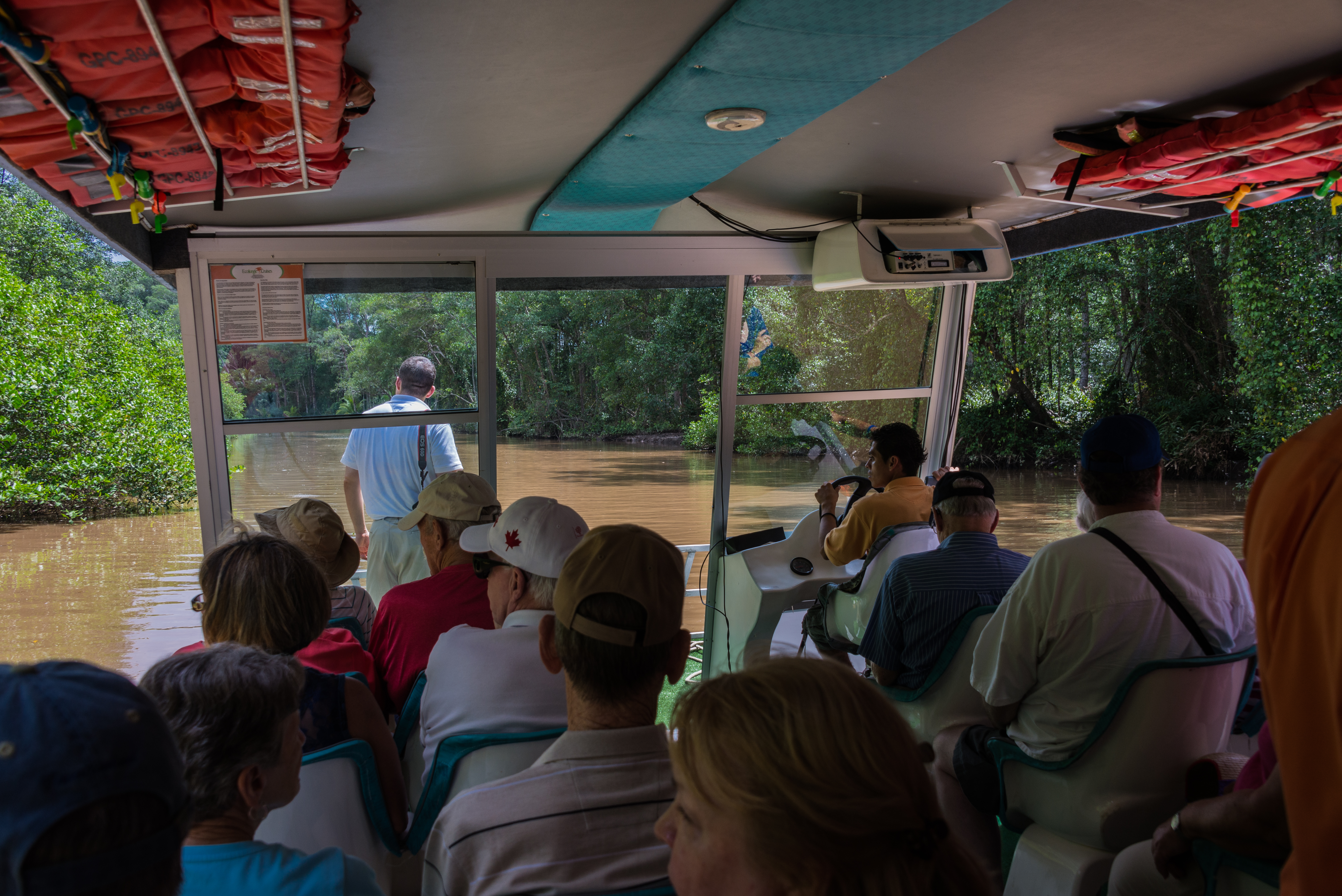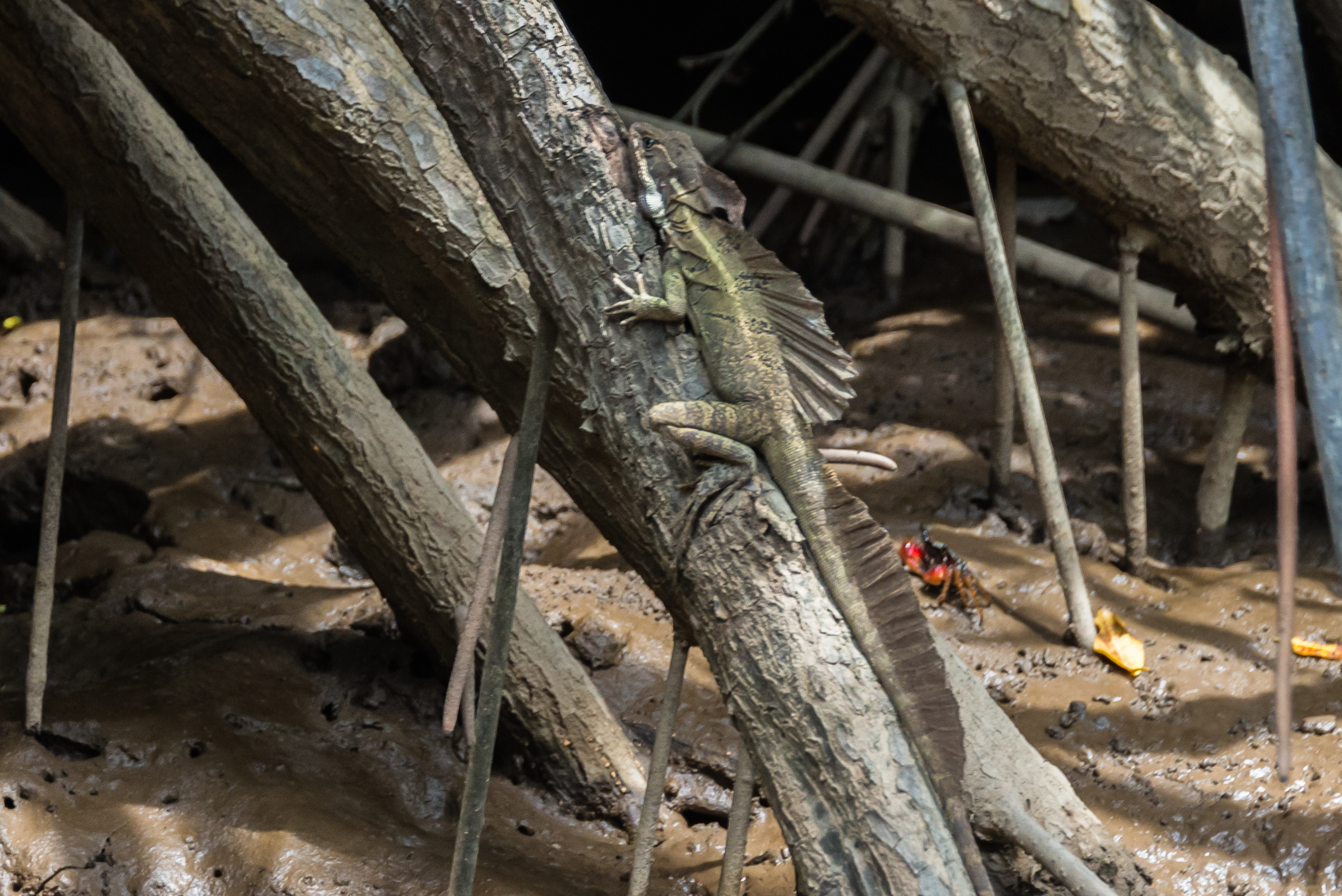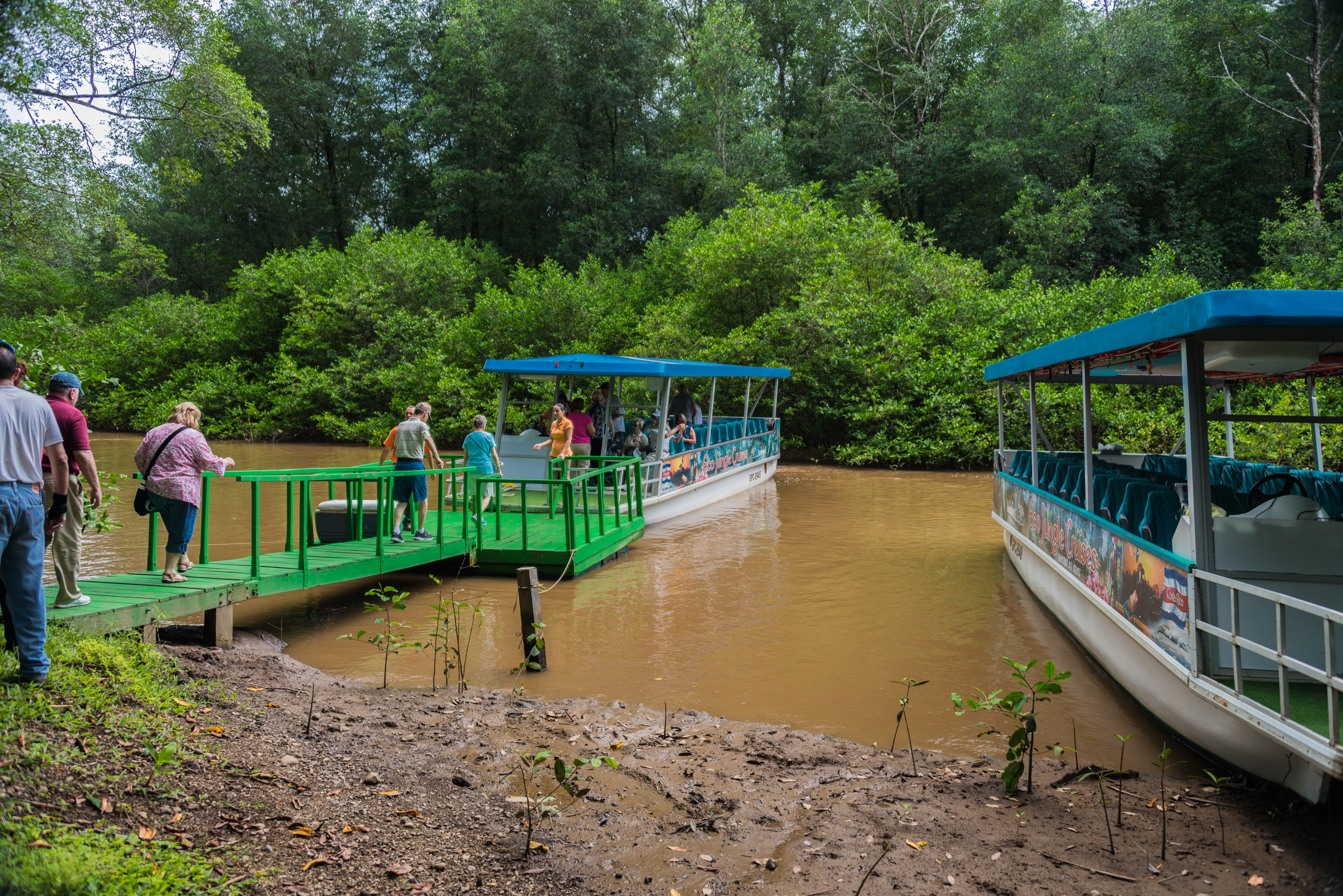 The last part of the tour was on a river through mangroves. This activity was very well done! The boats were large clean and covered, which I appreciated because we are in the rainy season. The boat driver was skilled at spotting wildlife and maneuvering the boat so everyone got a look. We viewed numerous birds, including a pair of scarlet macaws, lizards, and other birds. There were no crocodiles. Apparently, they like to show themselves at low tide and this was at high tide. From my perspective, this was great. If anyone wanted a recommendation, I would suggest dropping the train ride, changing the shopping and food stop to something more Costa Rican, and spend the most of the day on the river finding wildlife.