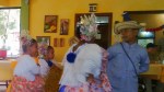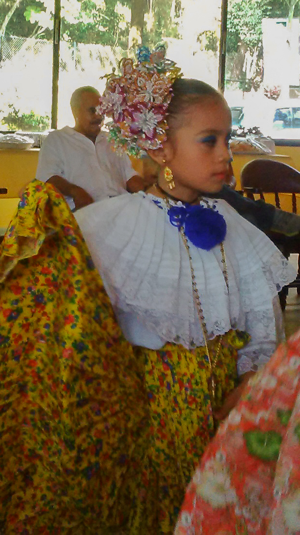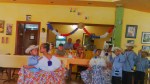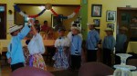 A bus full of around 20 young kids from the Catholic school at the base of the hill rolled into the parking lot and unloaded. They looked like they were all probably under grade six. Parents helped to organize them outside the clubhouse and when they entered, they were all dressed in cultural costumes, complete with jewellery and makeup. The dancing began, once the music on the boom box started and they were surprisingly very good dancers for their age.