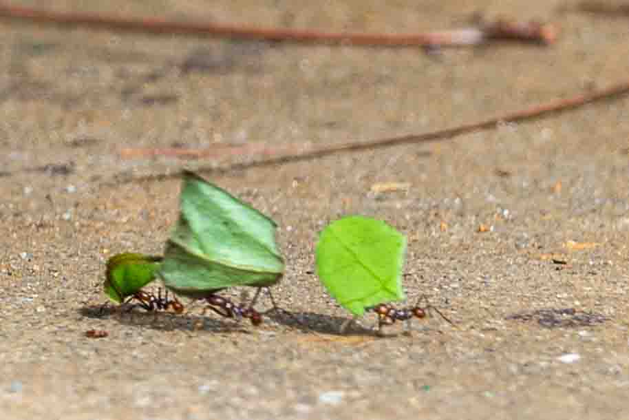Nature’s beauty is ever evident here. The spectacular waterfalls on the river are most restful to linger beside for a while. A closer look will show butterflies in search of flowers. A banana tree, with a full load of fruit is busy ripening and waiting for birds, monkeys, or other wildlife to come and feast on the fruit when is perfectly ripe. A closer look reveals a line of leaf cutter ants, hauling their bounty back to the nest.
