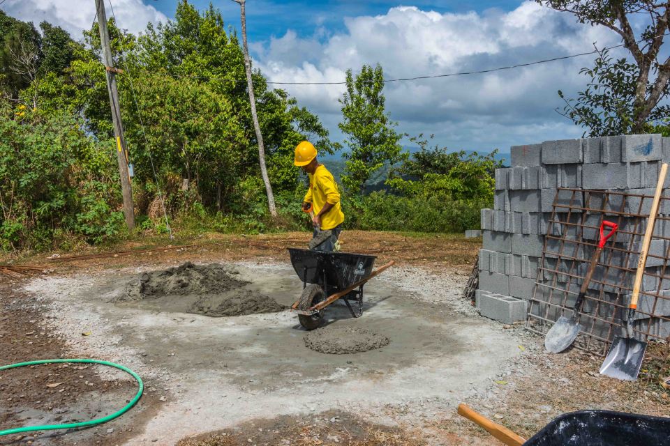 We initially thought that we would have a concrete mixer to mix the cement but we have run into a number of problems. We cannot get a full size concrete truck up to the site due to weight and size problems.  There is a half-size truck but it has the same problems.  A portable mixer would be the solution but there is nothing the size we need available.  We can get a one or two meter mixer but it would take longer to produce the concrete with that small a machine than to mix it by hand.  So, as people here have done for years, our workers mix cement, sand, and gravel together on the ground with a little water and magically you have concrete.  We will be adding some chemicals to make sure the strength of the concrete is to an proper standard.
