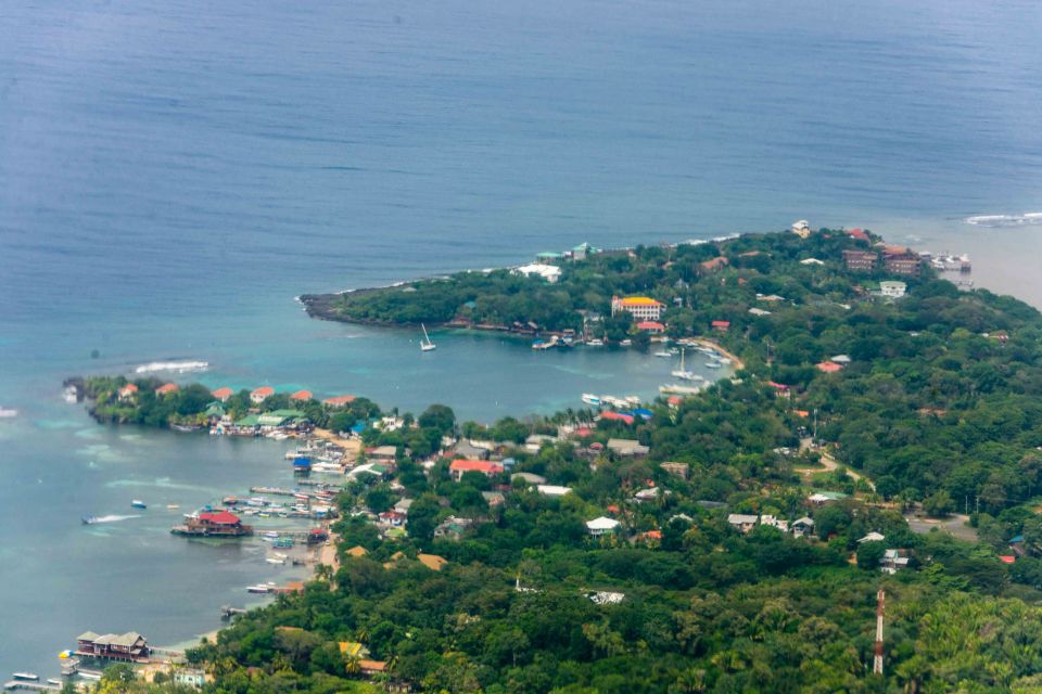 The airport at Roatan, in the former British Honduras, is located in a scenic town called Coxen Hole. Roatan is part of a group of islands called the Bay Islands. This is also the site of the cruise ship docks where three to four ships arrive almost each day of the week.