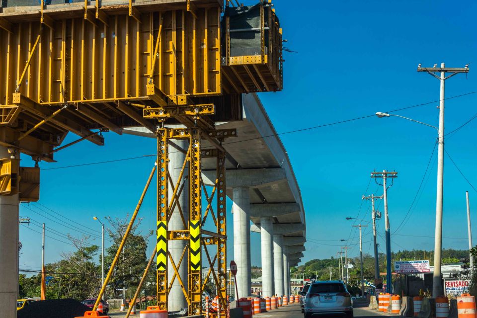 Our route takes us down the mountain road to the main gate of our complex and further down the mountain from there. The road width and smoothness does improve, marginally, as we descend. We take a shortcut that takes us past a shopping center and that has our favorite fruit stand at the side of the road. A right turn will take us on to the Interamerican highway, currently construction bound with unpredictable traffic. In a short while, we begin to see some of the new Metro construction but turn on to one of the two main toll roads to cross the city. They are called Corredor Sud (south) and Corredor Norte (north). Our trip takes us across the city on Corredor Norte.