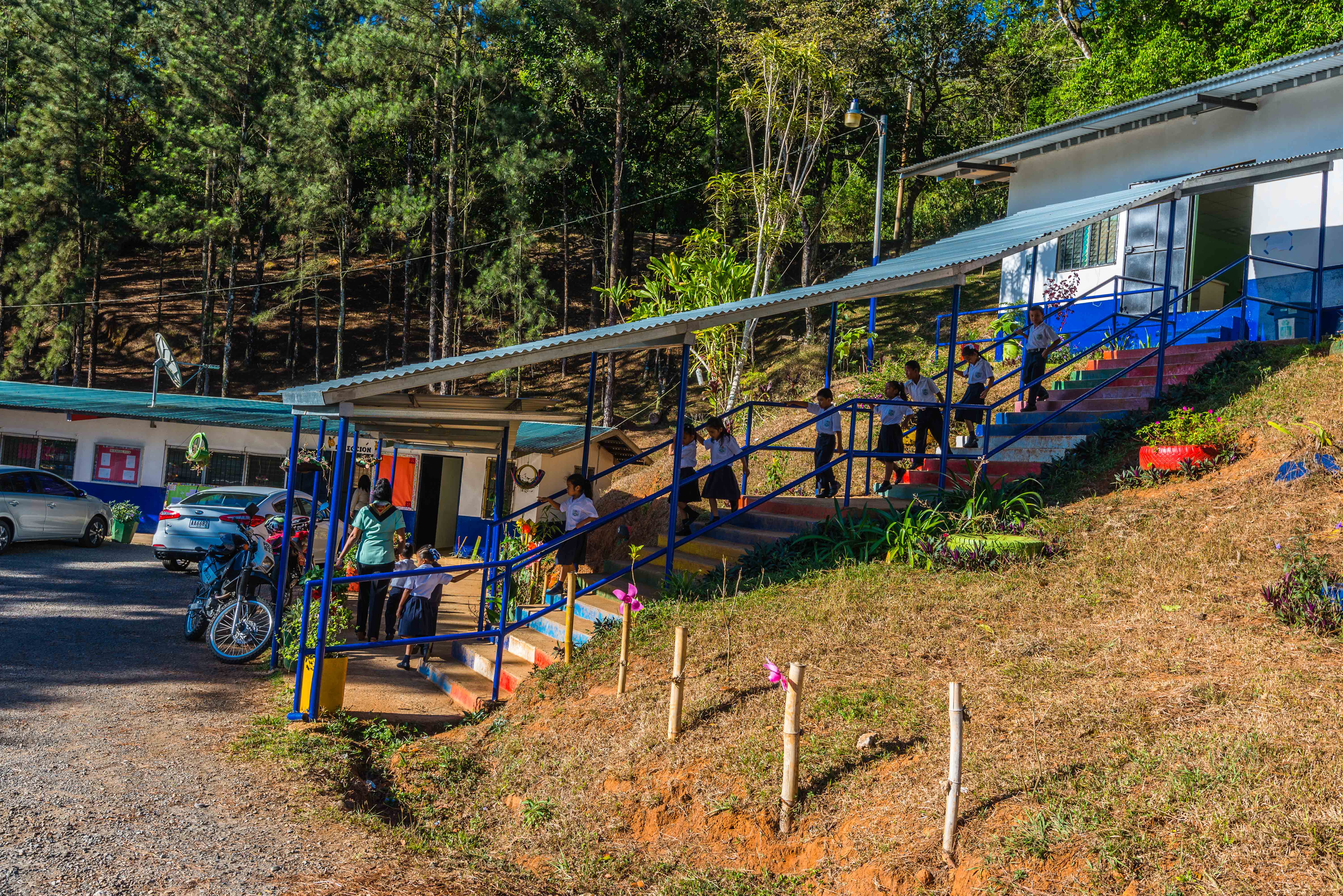 Each time we bump and wind our way up and down the mountain, we pass a Panamanian Public School called E.B.G. Juan E. Jimenez. There is no ability to speed as a rough tight hairpin curve just at the entrance to the school keeps things under control. We have never had the chance to see this school close up until today when a charity, called “Maria Luisa de Moreno Fundacion Internacional” will have a team there to give some of the less fortunate kids a small package of school supplies.