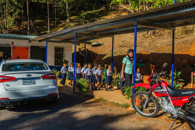 Yesterday, we took a trip that we probably should not have taken in our two-wheel drive Toyota Rav4. We went partway down the mountain to a small lake called Goofy Lake and turned left into a small housing community called Buena Vista. Many of the families living here work for Melo, a large chicken producer in the area. Melo provides their chicken farm workers with houses, however this man works in the incubating department so is not entitled to a house.
