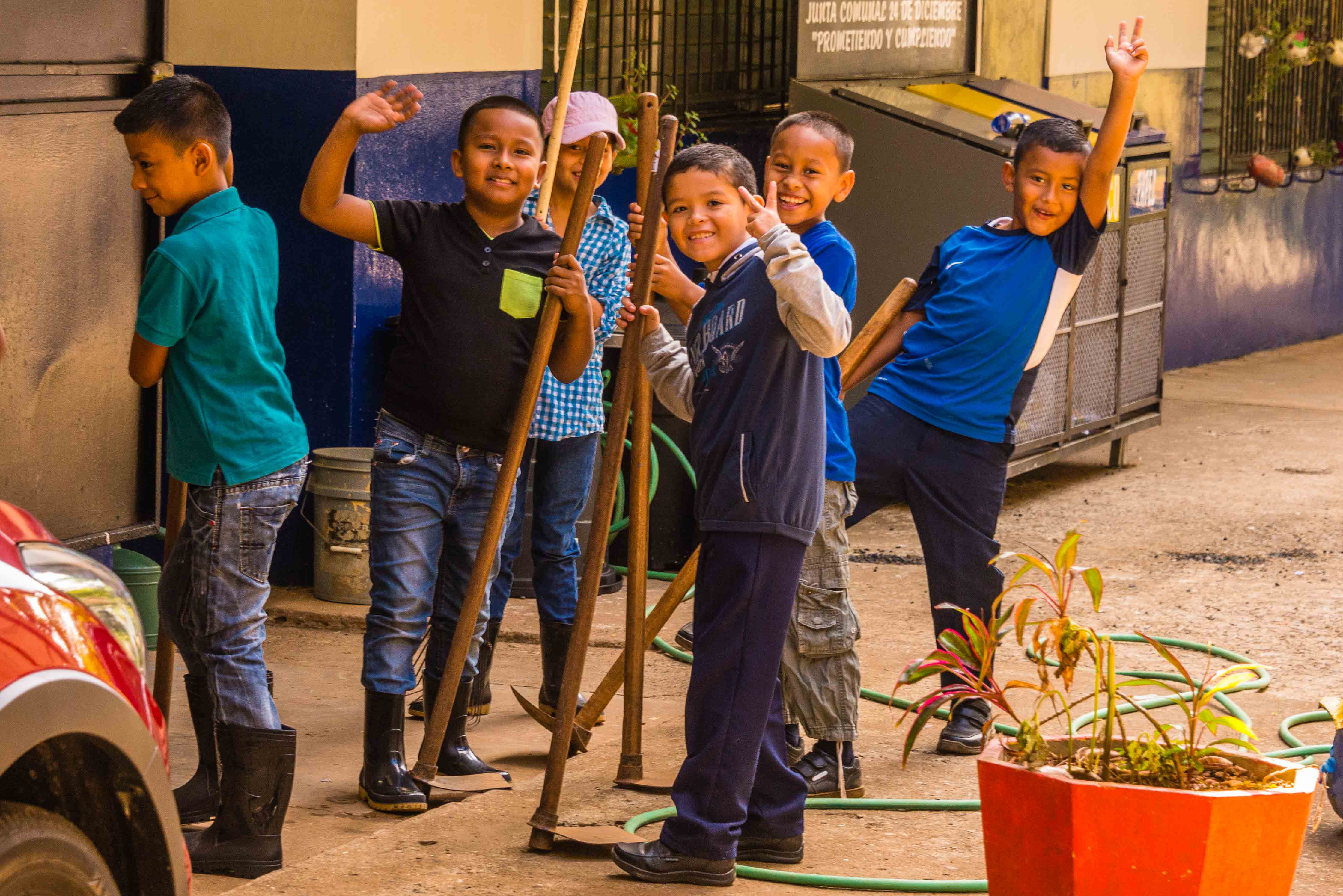 I caught a class getting ready to head out to the garden area. They were drawing tools from a storage locker which they used during a class in the field. Here, as it is a rural area, the kids learn how to plant and grow food. The beautiful blooming flowers around the school buildings are a complement to their abilities. I was told that each class had their own area of the garden to plant and keep up.