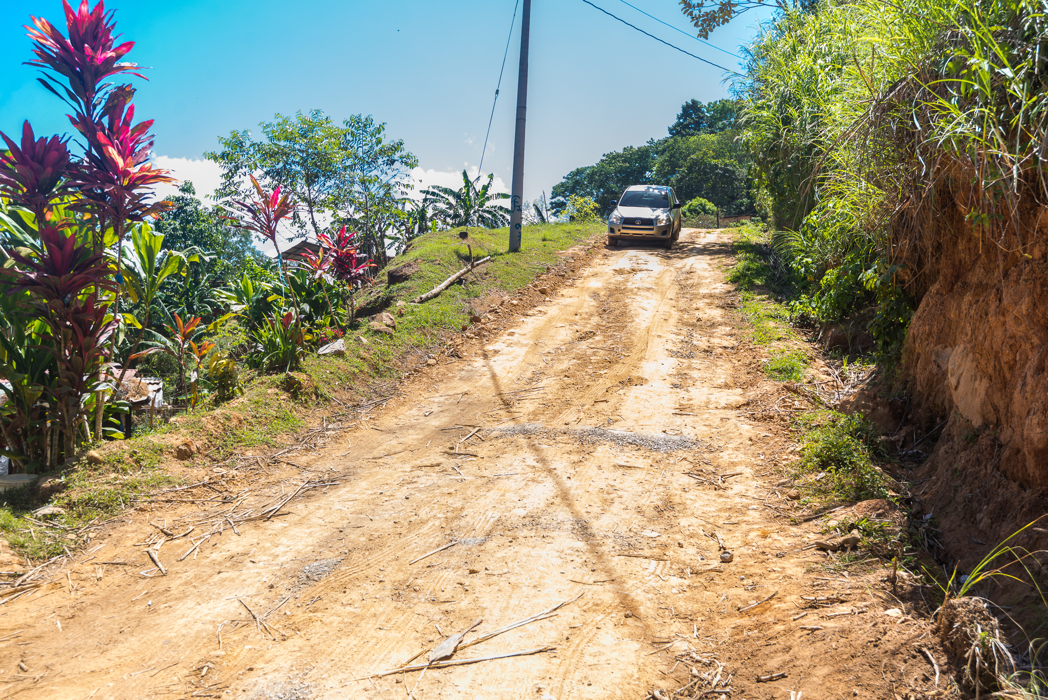 Until recently, we would have needed to hike in from the road to Panama City, but a new road is under construction by the government. It is not finished yet, but the packed gravel surface is currently passable and a huge improvement over its predecessor, a steep red clay dirt track that would become like a shiny skating rink after a good rain.