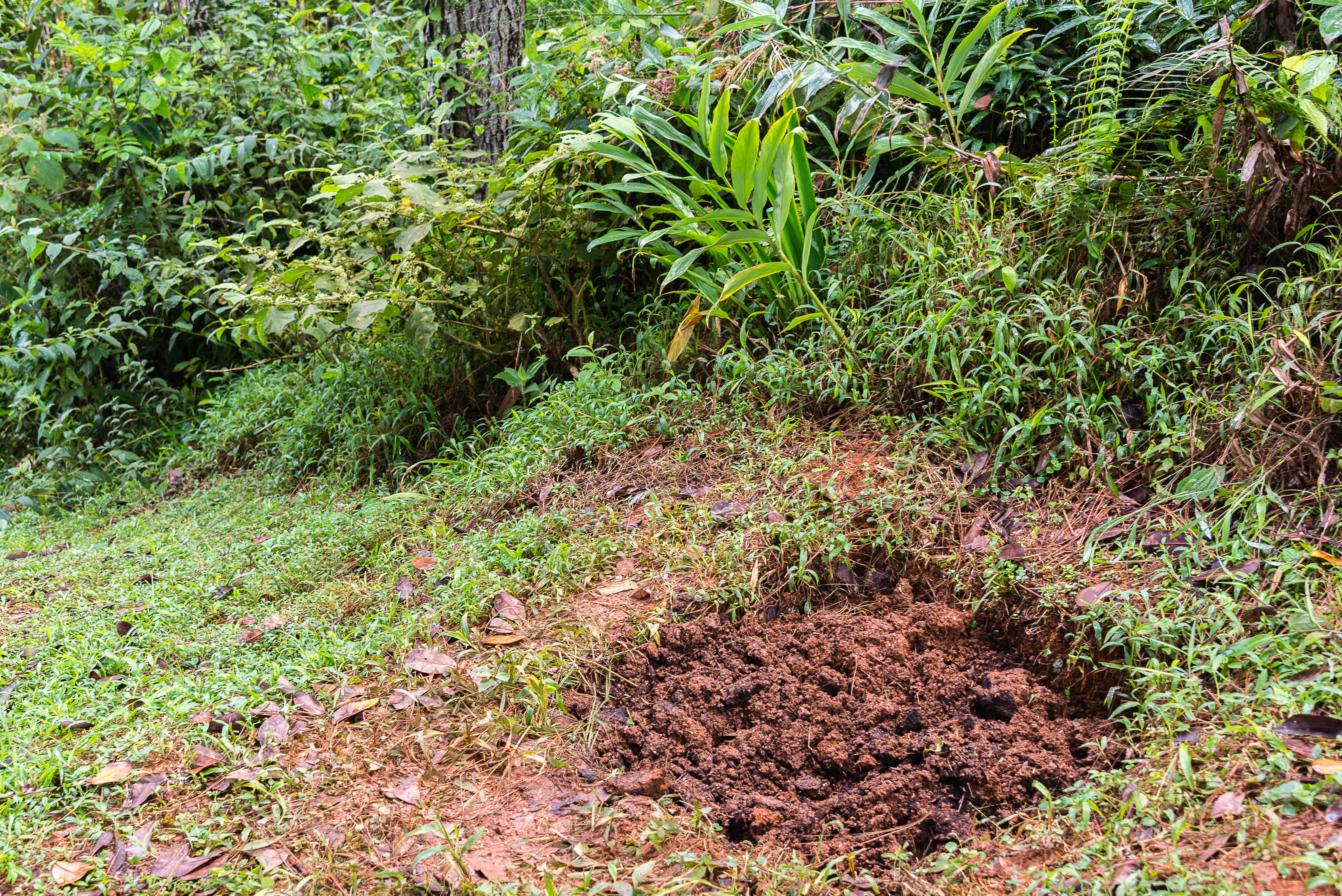 Our little area in the jungle has a poor quality of soil. Even though it is heavy red clay, things grow quickly. The soil is difficult to work with for planting anything! So, we decided a couple of years ago to begin composting, in hopes that augmenting the soil would be helpful in improving its quality.