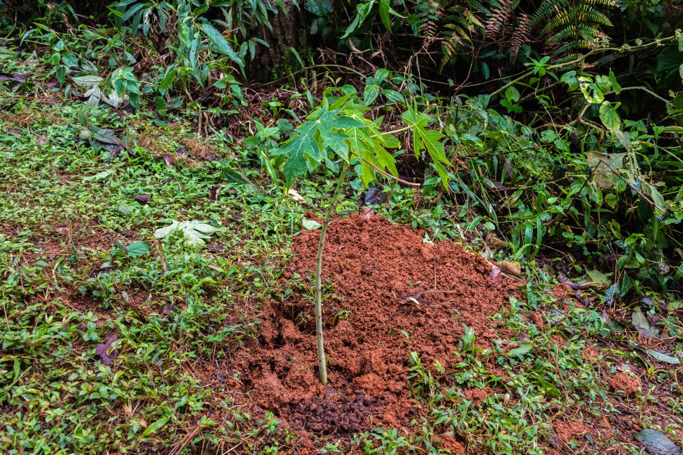 We love papaya and it grows well here if it has the right conditions. It likes full sun and good drainage. Our lot has now got more than a dozen papaya seedlings planted in various test places. We need to find locations that the plants like as it gets quite windy here in the dry season. Our planting attempted to offer sunny locations somewhat protected from the wind. We will see how successful we were.
