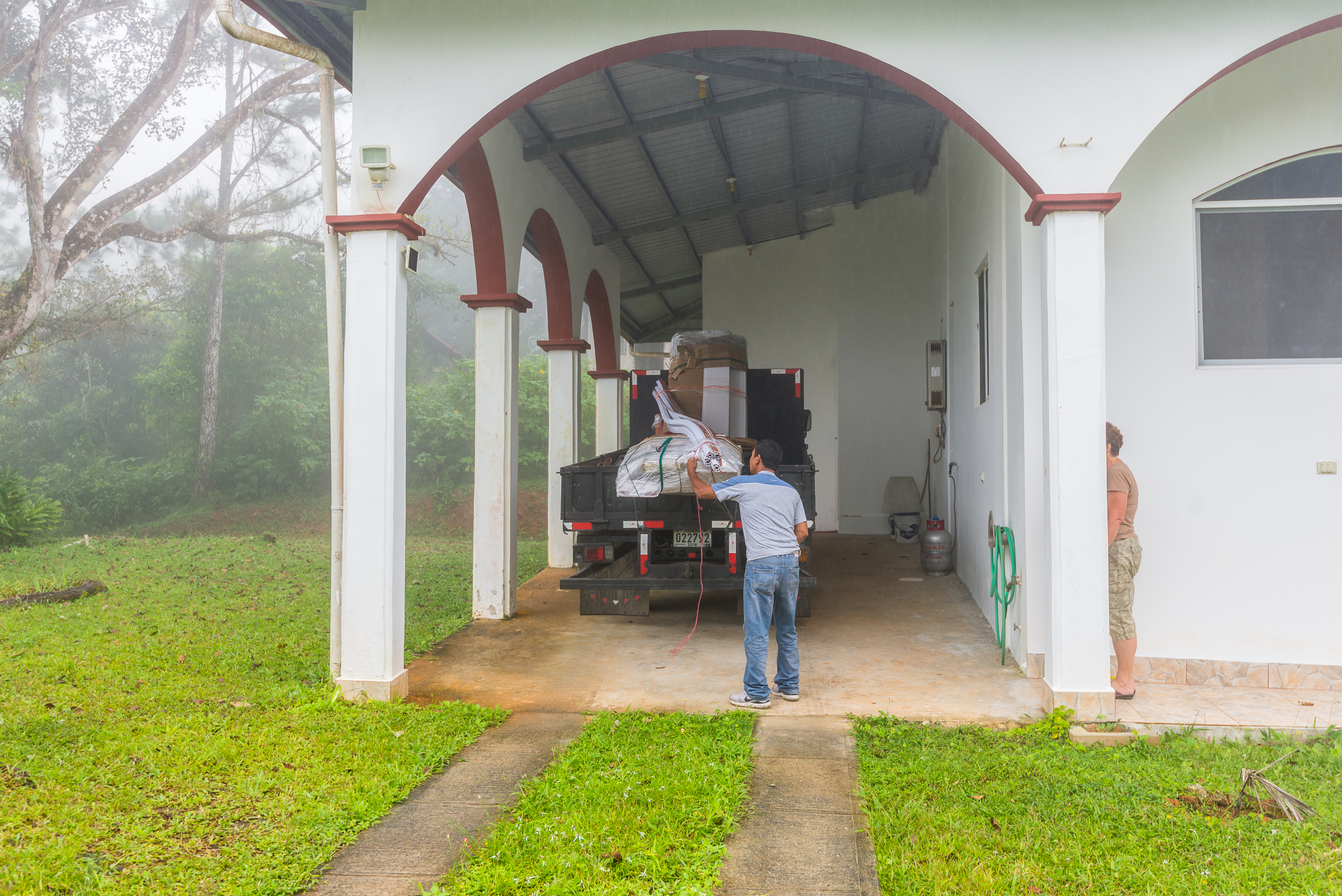 Eventually we found a stonework pattern tile that we liked for the outside decks. Our first estimate was that we needed just about 100 square meters. The next problem… delivery! Our first thought was to just throw it into the Rav and drive it back up the mountain. After all, it would be the Panamanian way… if it fits you load it up and go. Something didn’t seem right about that so I checked and found that each box weighed about 75 pounds. This meant that the total payload would be just over 3,000 pounds… way too much for one trip with the Rav, we would need three. We talked with the store and they got us a quote and made the arrangements for a 4×4 pick-up truck to haul the load up the mountain to us. It arrived, all in one load! According to the Internet, the payload for a Toyota Hilux 4×4 is about 2,000 pounds. All 3,000 pounds arrived on a single load!