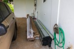 Another concern was in the office. There is a sliding glass door there that is actually mounted too low. There is no way for the rain that hits the door and runs down and into the track, to drain so the floor in the office can get wet. The correct solution is to remove the door and remount it again higher and open the drain holes in the track to the outside. We will install ceramic tile outside on that patio so the height will increase. Once again, we are impressed with the ingenious solutions that our Panamanian workers come up with. Sebastian, who will lay the tile for us next year, suggested installing a small sloped trough across in front of the door, draining through the wall. This will give the water in the track a place to drain. We tested it by turning the hose on the outside the glass door and found that the inside stayed dry. Impressive and lots less work than raising the door.
