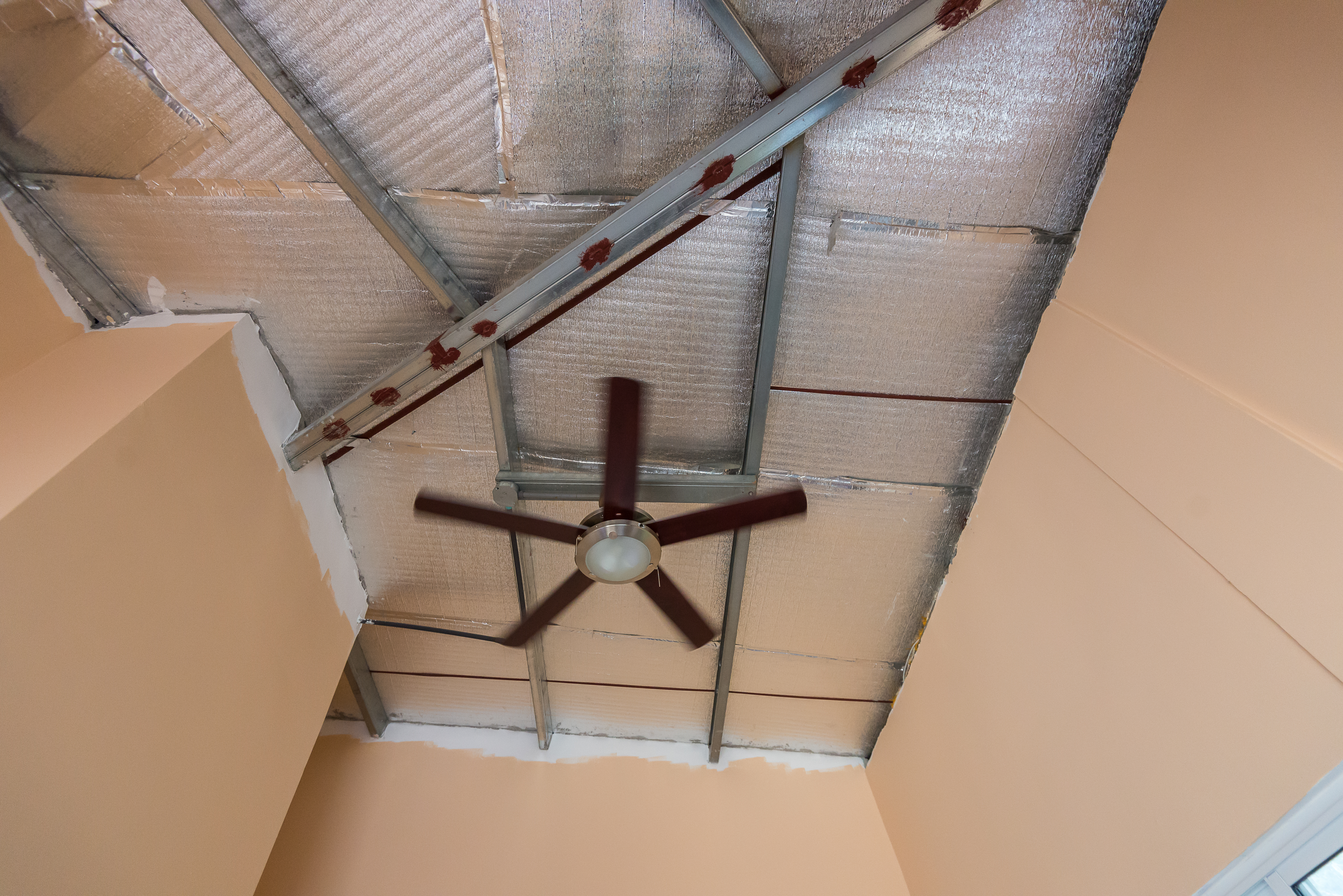 It looks like the next thing we need to do is decide on how we want the ceiling installed. Most places we have seen using this product have followed the inside of the roof line. In our case this presents some difficulties due to the steel structure supporting the roof. It would not be a symmetrical installation. Finally, we decided on a simple flat ceiling. Simple! We also have a high enough roof that we will be able to make an eleven foot ceiling. This allows for lots of air to circulate, which helps keep things cool in the heat.