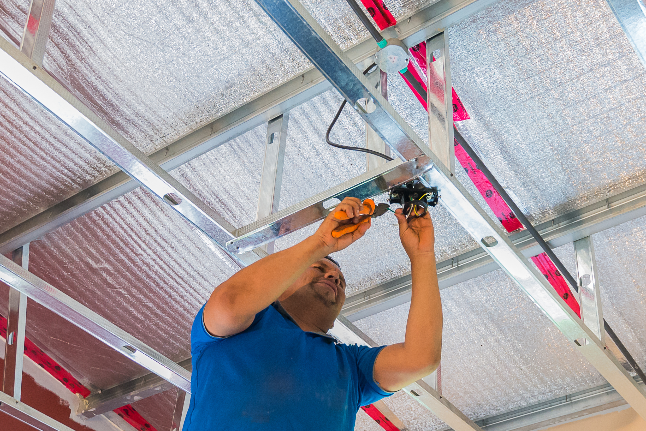 Next, we had to find an installer so we talked to a local contractor we knew and asked him to bid on the job. The surprising result was that he had located a four-man team with lots of experience installing this type of ceiling. This contractor is also an electrician and we needed to adjust some of the lighting. Our existing lighting was simply mounted in a junction box attached to the roof beams. These junction boxes needed conversion to distribute the wiring to new LED fixtures mounted in the ceiling. In retrospect, this was a great approach as we had a couple of years to consider what lighting changes we would make to improve visibility.