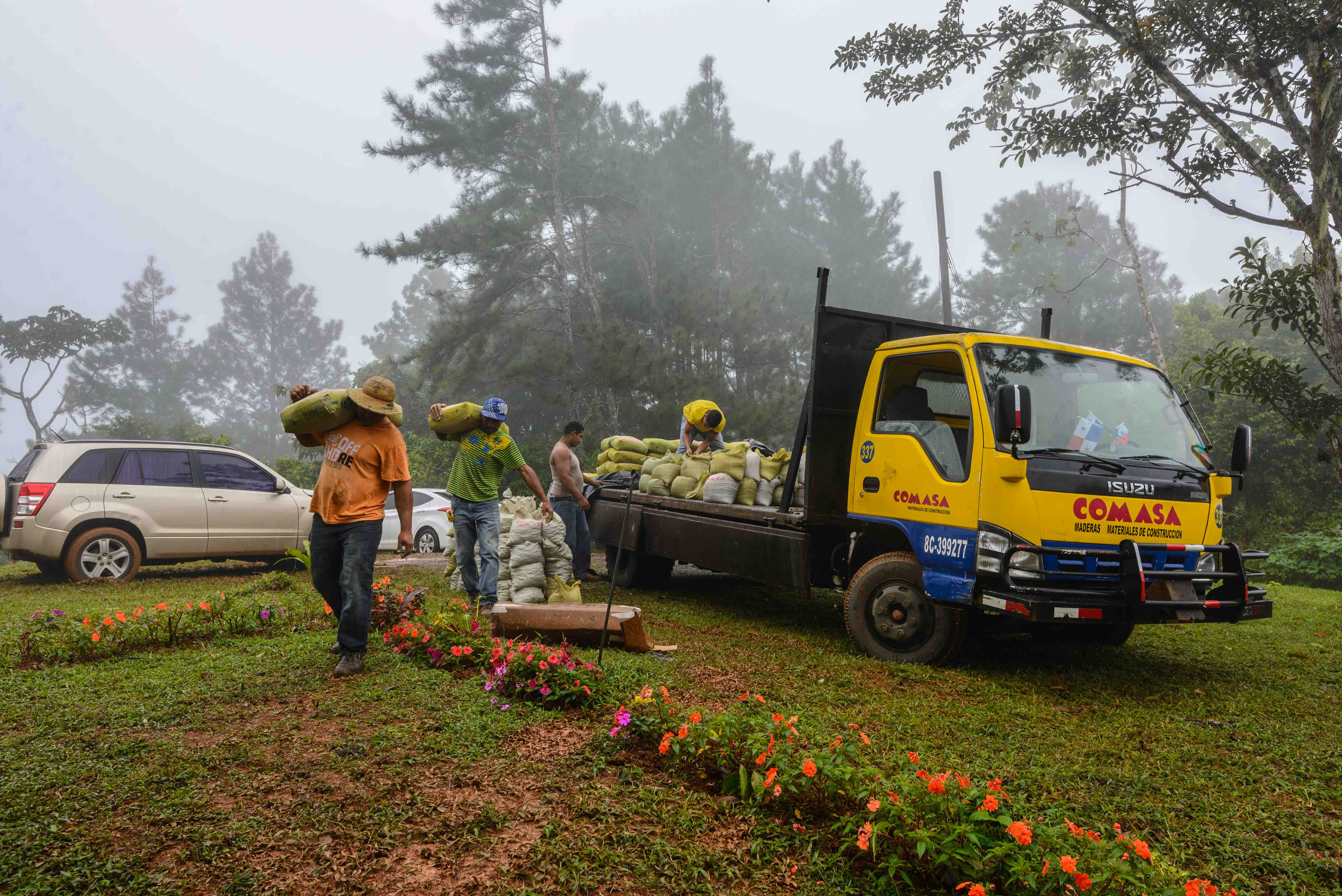 We initially thought that we would have a concrete mixer to mix the cement but we have run into a number of problems. We cannot get a full size concrete truck up to the site due to weight and size problems. There is a half-size truck but it has the same problems. A portable mixer would be the solution but there is nothing the size we need available. We can get a one or two meter mixer but it would take longer to produce the concrete with that small a machine than to mix it by hand. So, as people here have done for years, our workers mix cement, sand, and gravel together on the ground with a little water and magically you have concrete. We will be adding some chemicals to make sure the strength of the concrete is to an proper standard.
